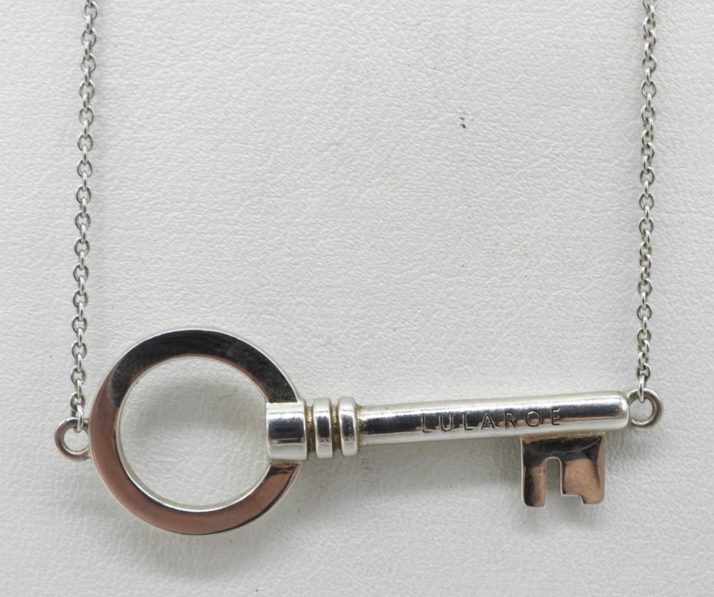 LULAROE STERLING “KEY TO SUCCESS” 2018 NECKLACE 16″. CZ LADDER STYLE PENDANT ON A 20″ STERLING CHAIN. (6.5 DWT)