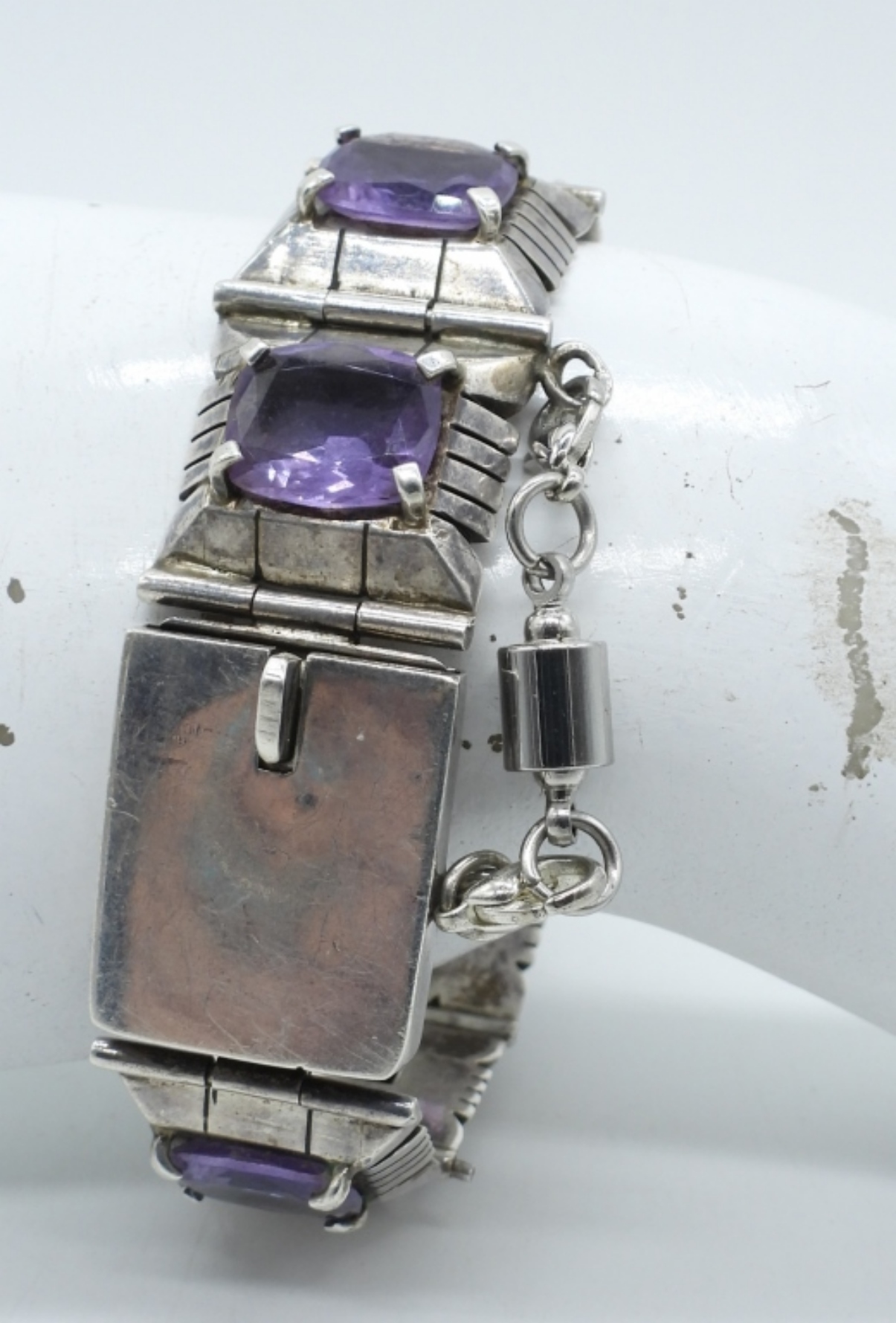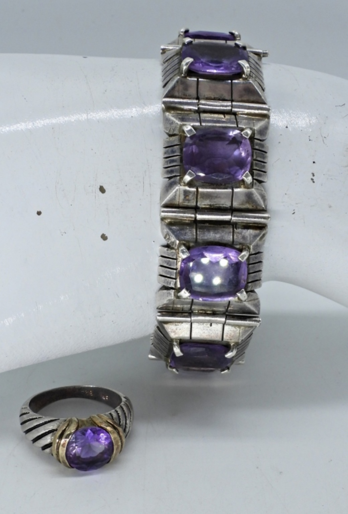 BRACELET HAS SEVERAL LARGE AMETHYST GEMSTONES, 8″. BRACELET IS VERY HEAVY! STERLING AMETHYST RING, SIZE 7 (47 DWT)