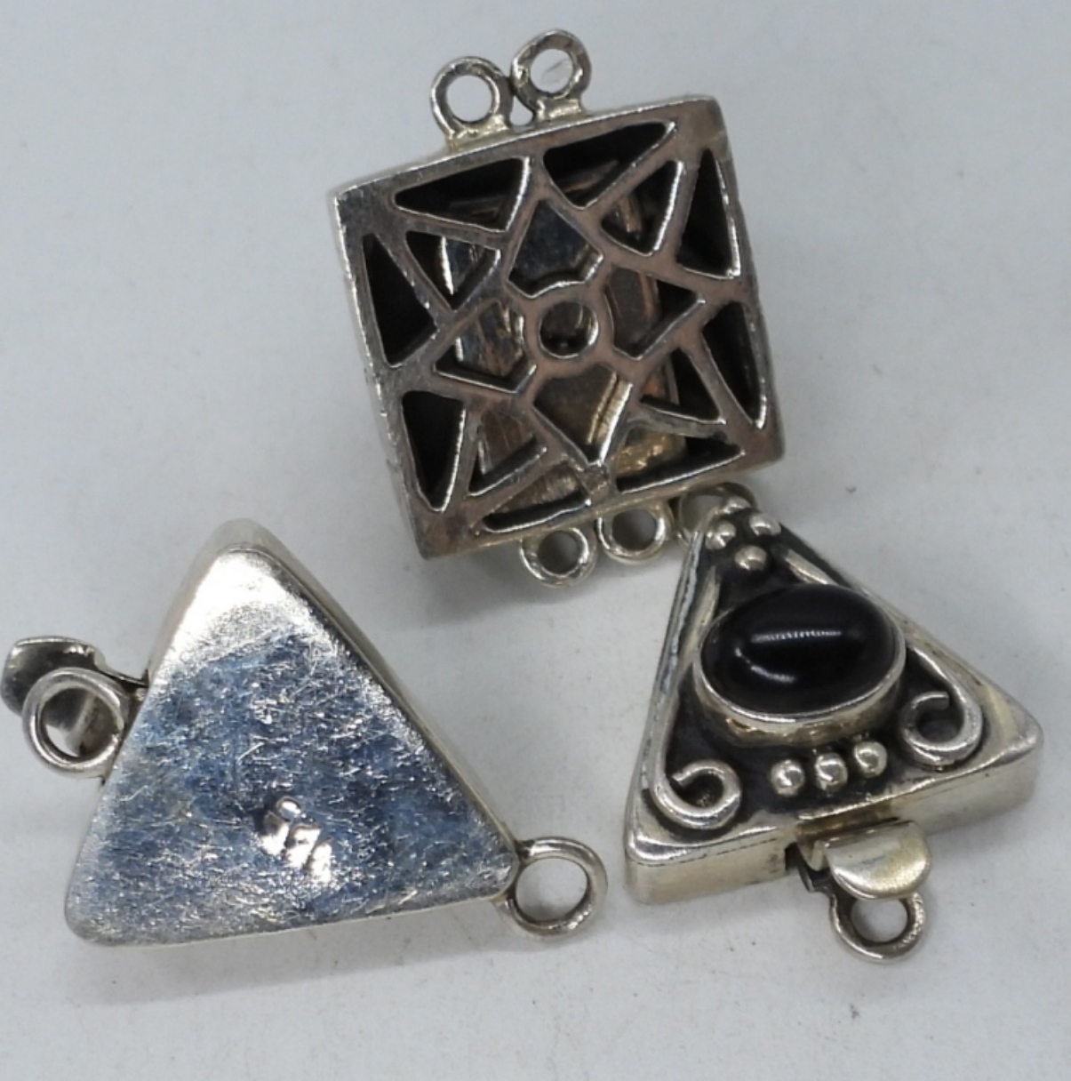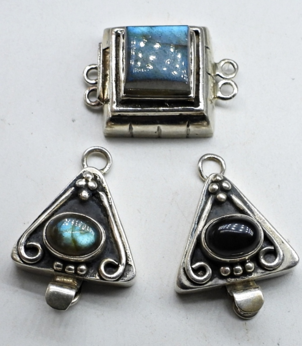 3 STERLING CLASPS. BLACK ONYX & LABRADORITE. GREAT FOR CRAFTERS!! (13.5 DWT)