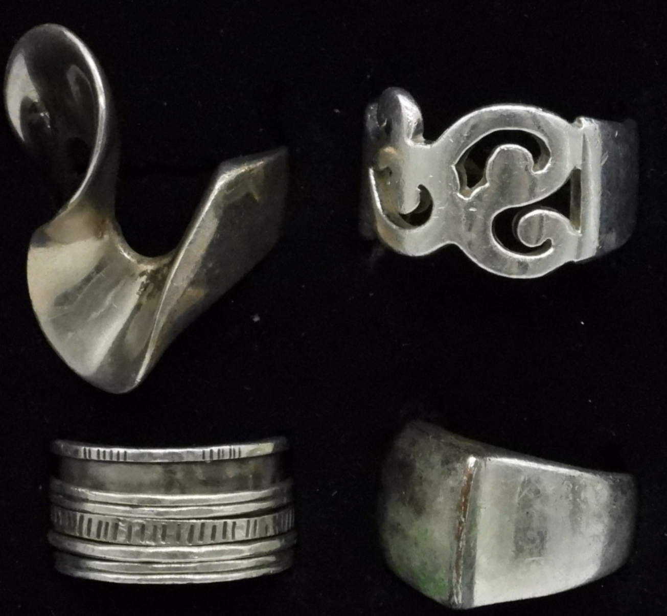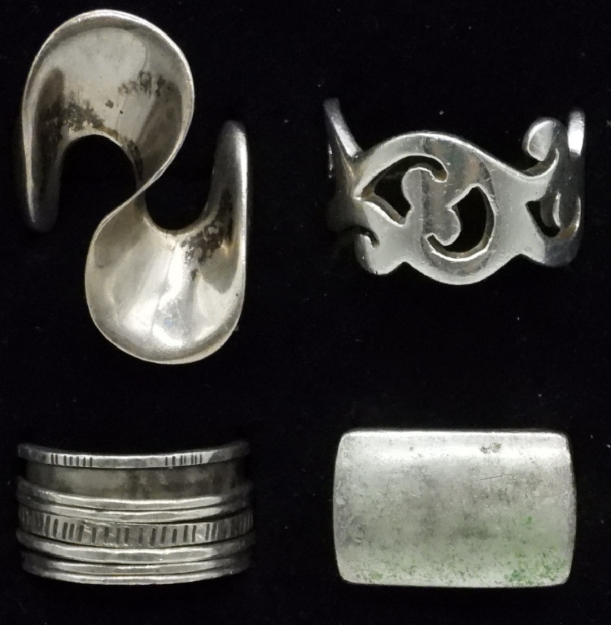 SIZES 6, 7, 8, 10. FOUR STERLING RINGS (28 DWT)
