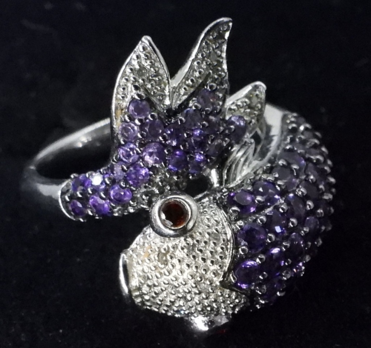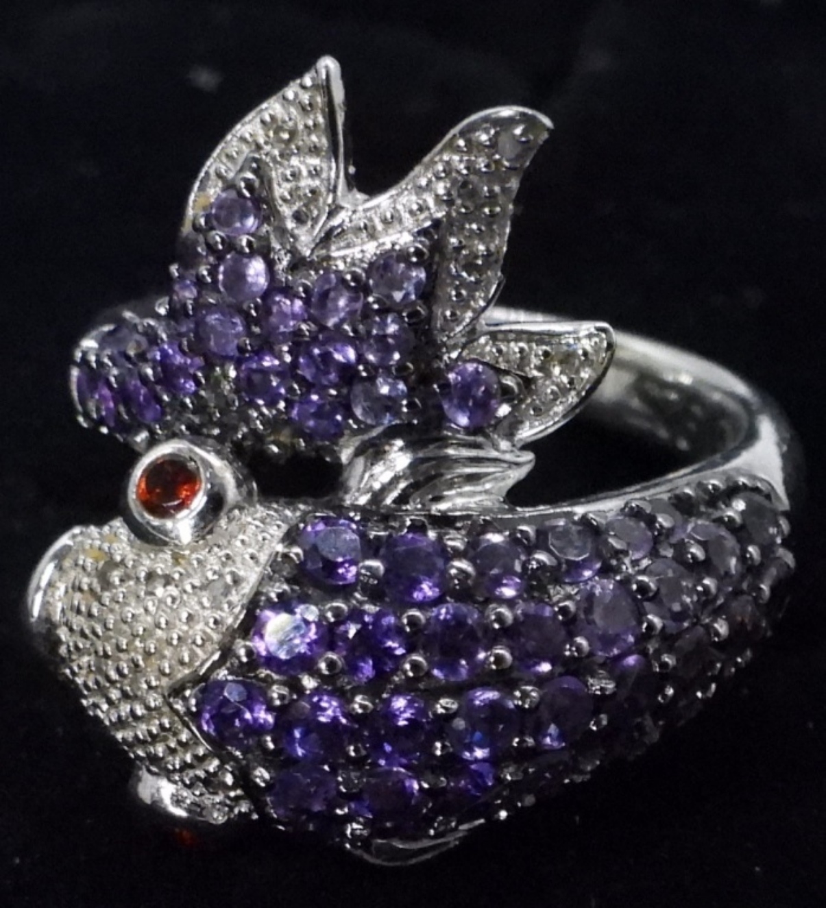 STERLING, PURPLE KOI GEMSTONE RING, SIZE 7. MYSTIC TOPAZ RING & MATCHING PIERCED EARRINGS, SZ 7. AMETHYST RING SIZE 5. (9.5 DWT)