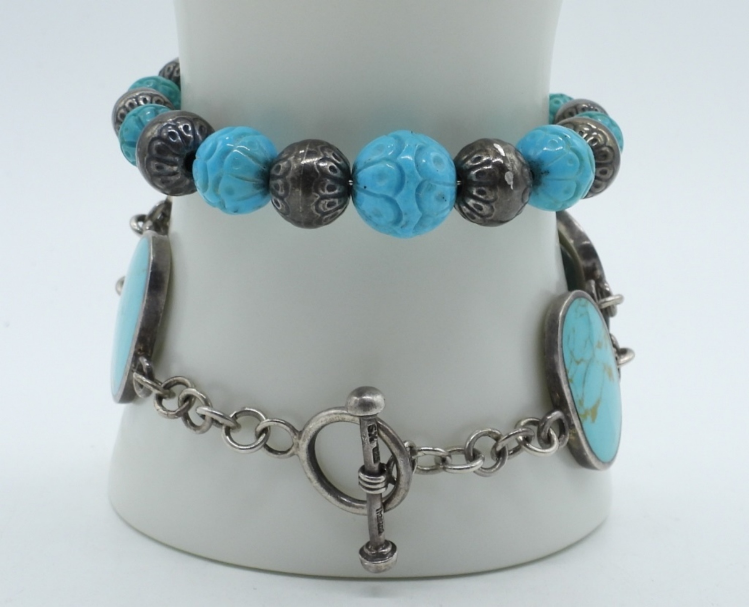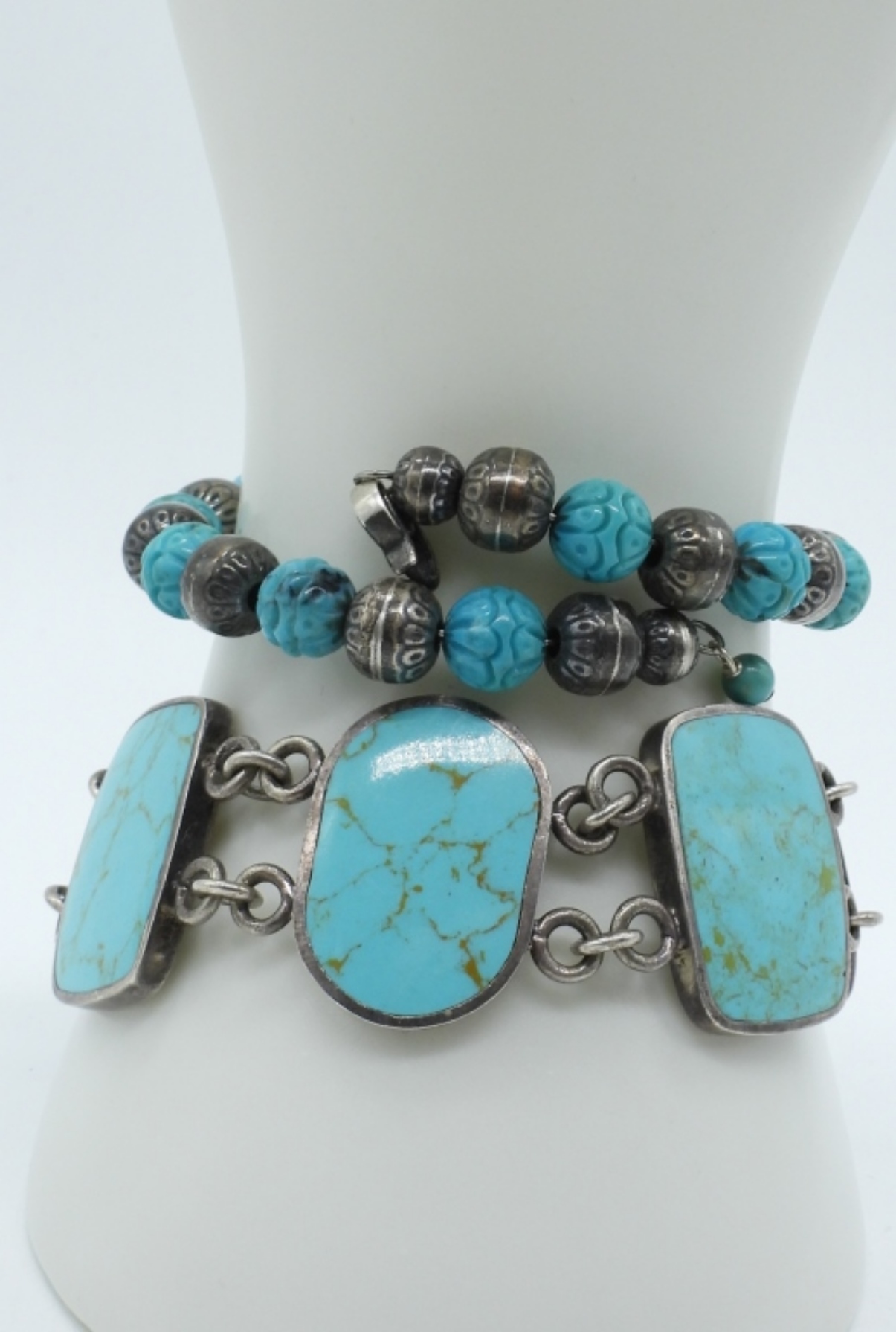 TWO STERLING BRACELETS WITH WHAT SEEMS TO BE FAUX TURQUOISE 6 – 7 ” (25 DWT)