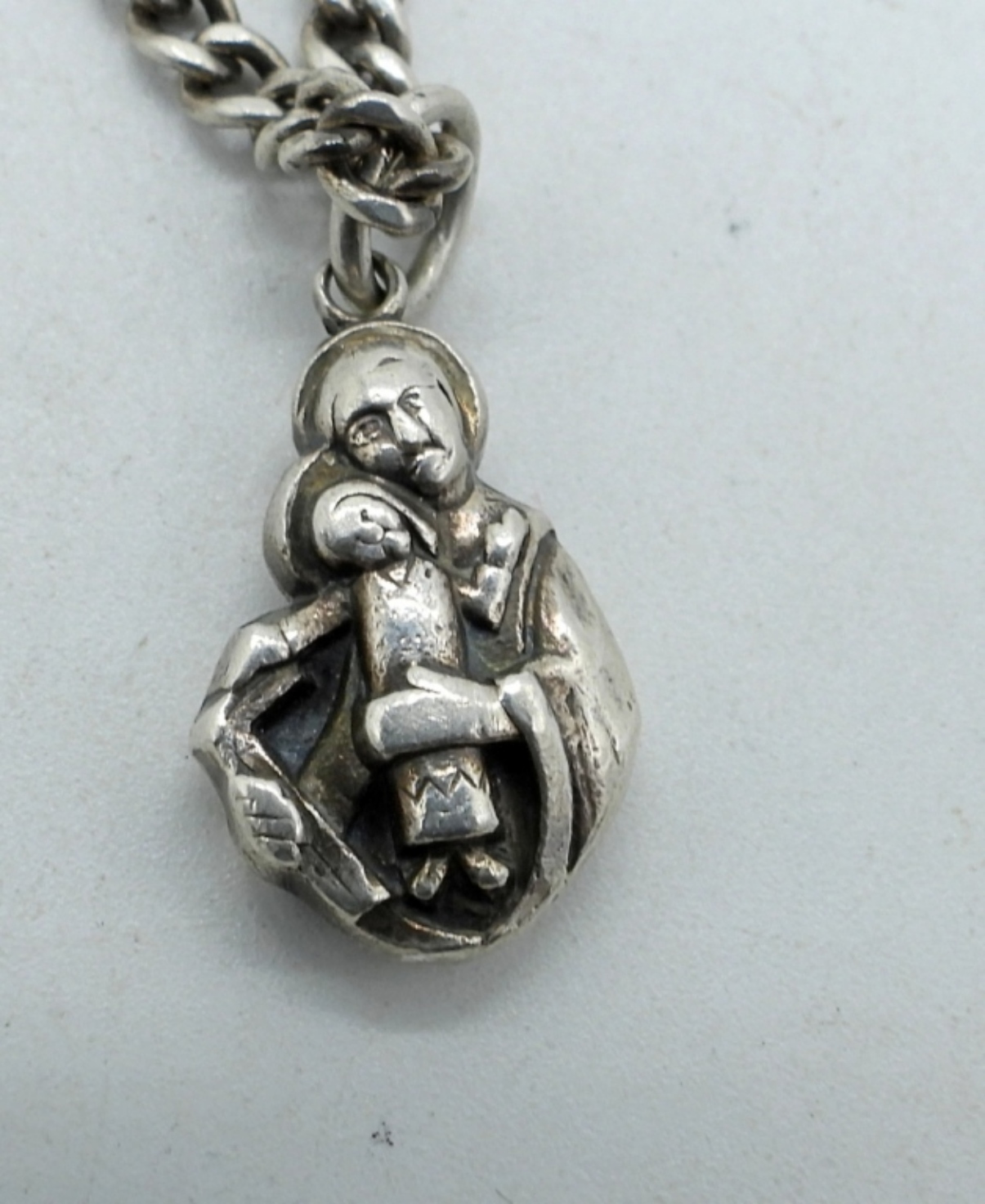 ONE RELIGIOUS PENDANT (CREED 925) ON A 30″ STERLING CHAIN. THREE PAIR OF PIERCED STERLING EARRINGS. (24 DWT)