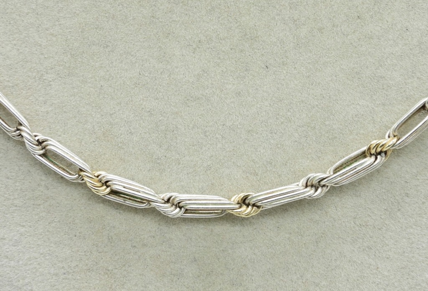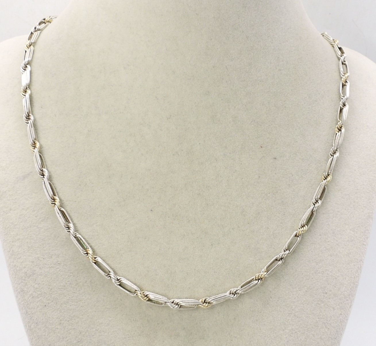 VINTAGE STERLING / 14K ACCENTS ROPE BAR CHAIN, 18″. (10 DWT)