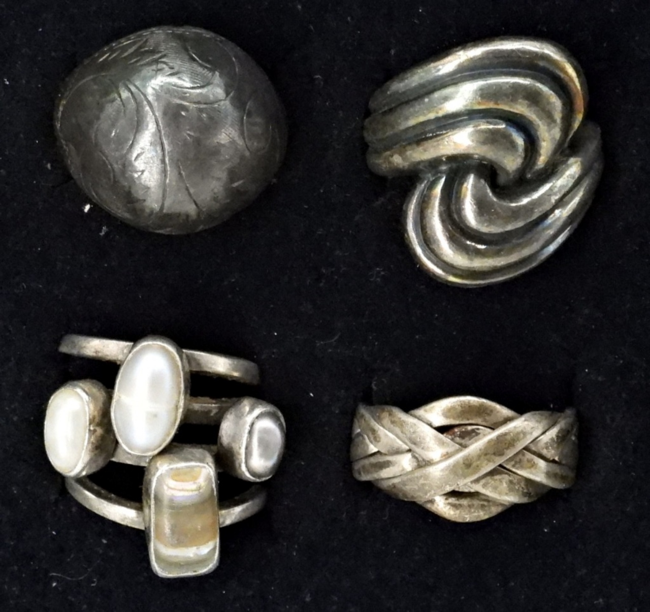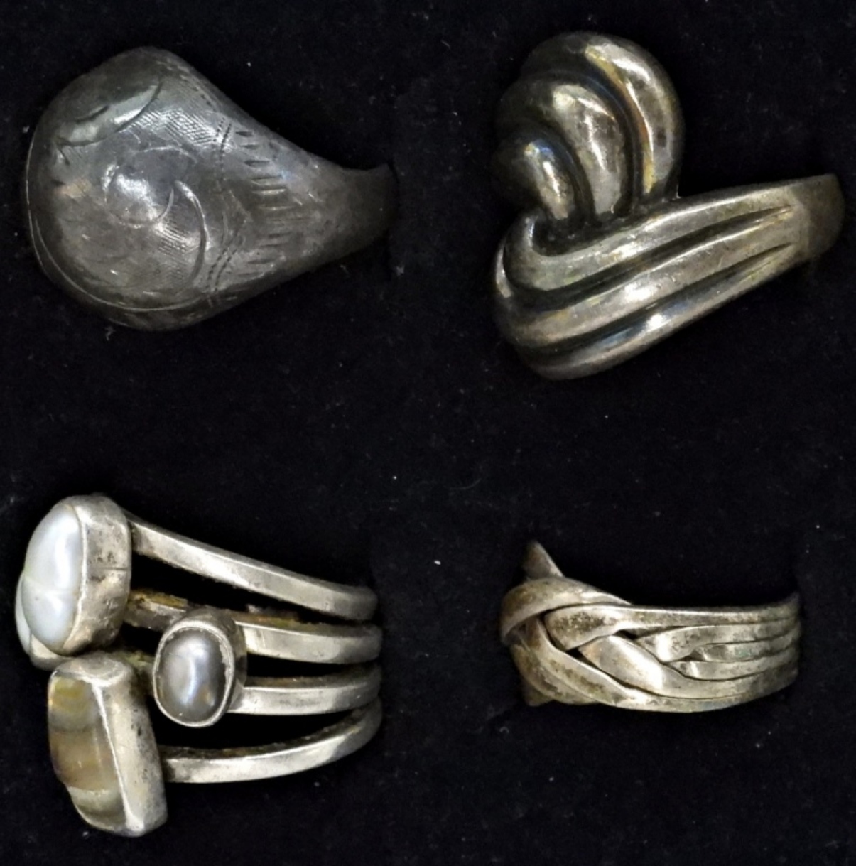 FOUR VINTAGE STERLING RINGS, SIZES 5,6,7. (20 DWT)