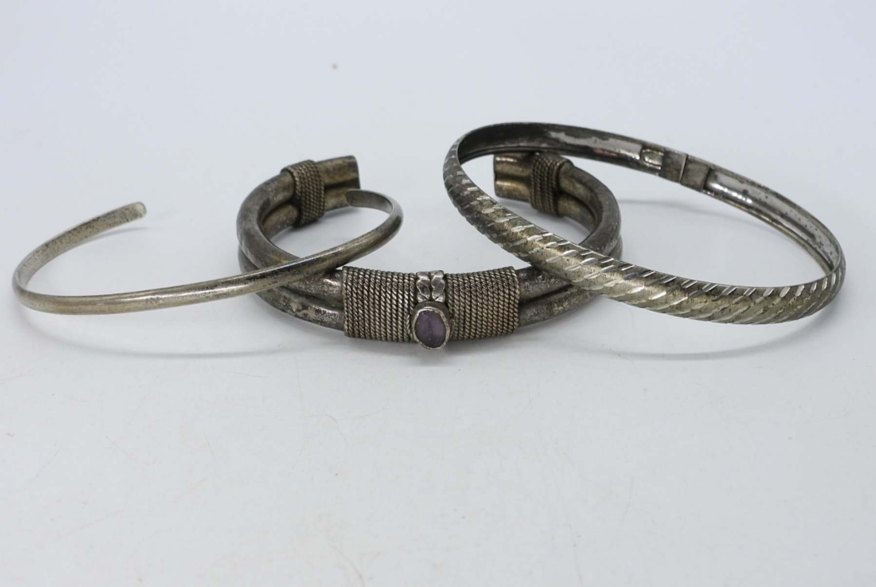 THREE STERLING BRACELETS. 7-8″. (19 DWT)