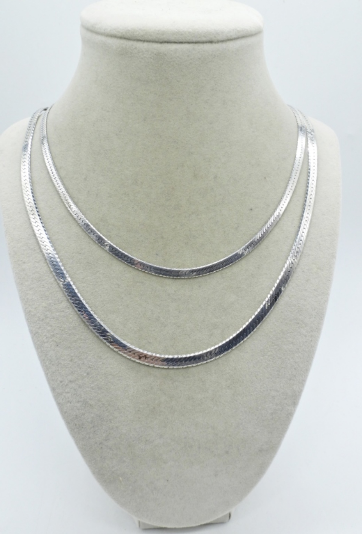 TWO STERLING SILVER CHAINS, 30″ LONG. (27.1 DWT)