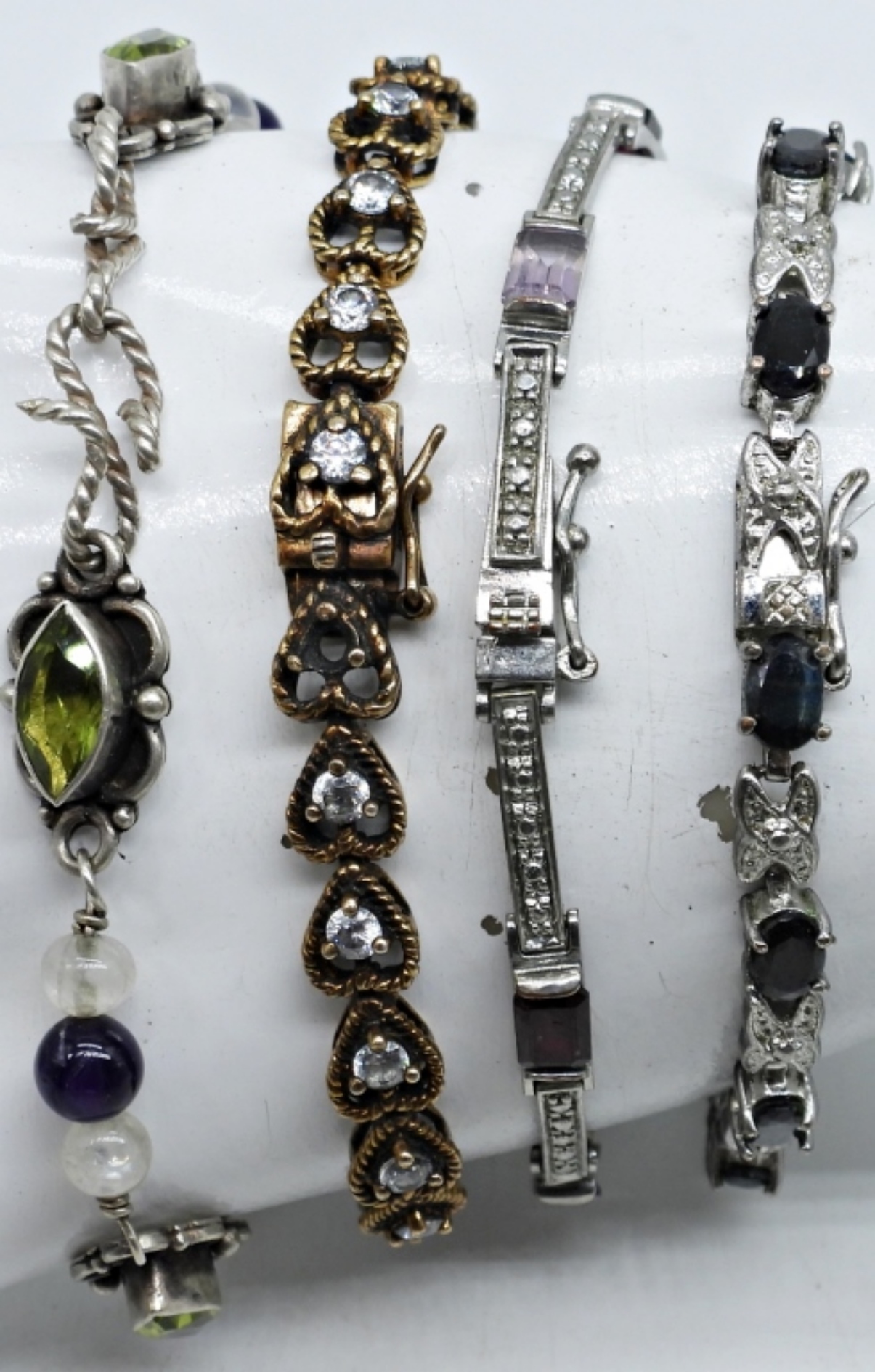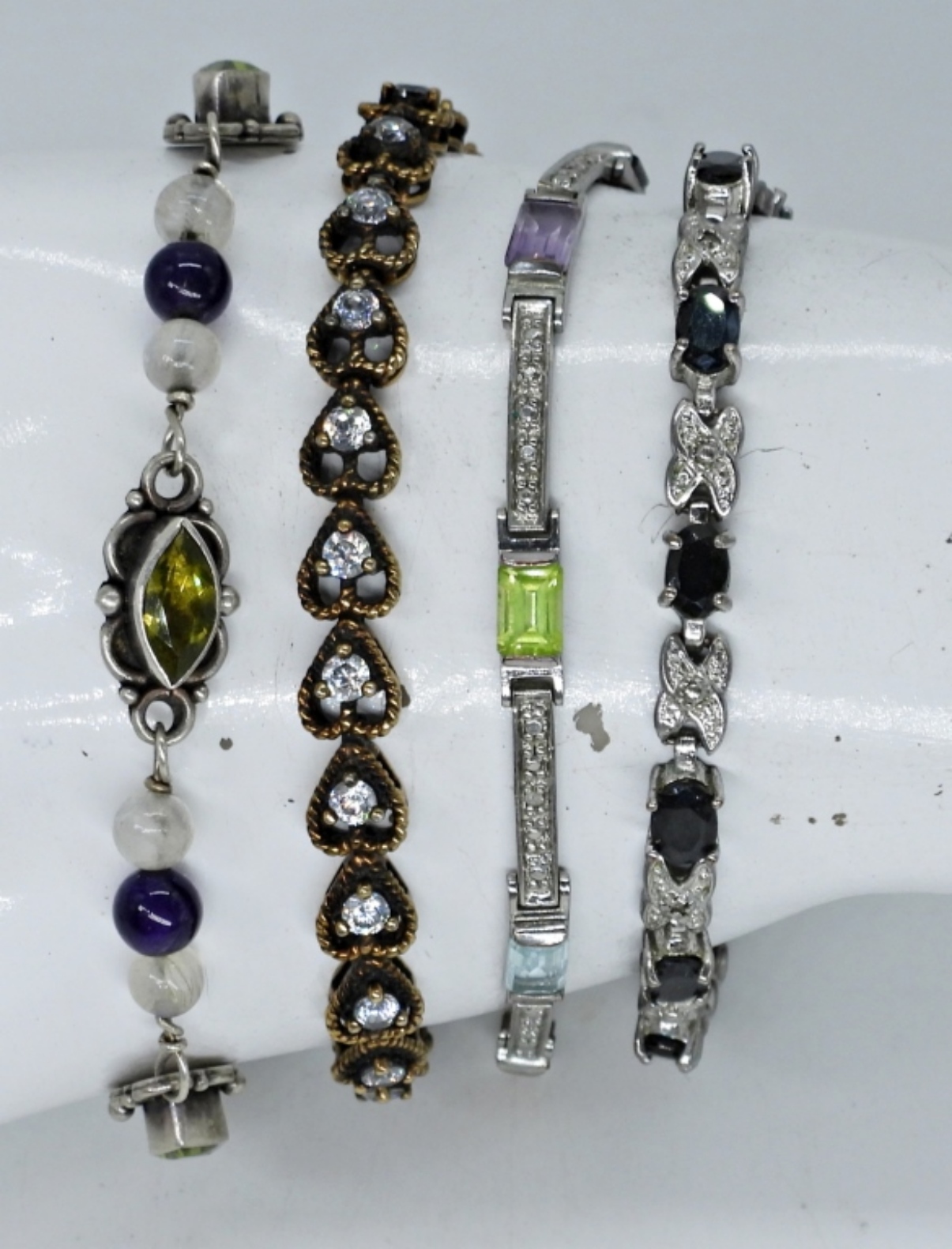 FOUR STERLING FASHION BRACELETS WITH GEMSTONES. 7-8″. (28.1 DWT)