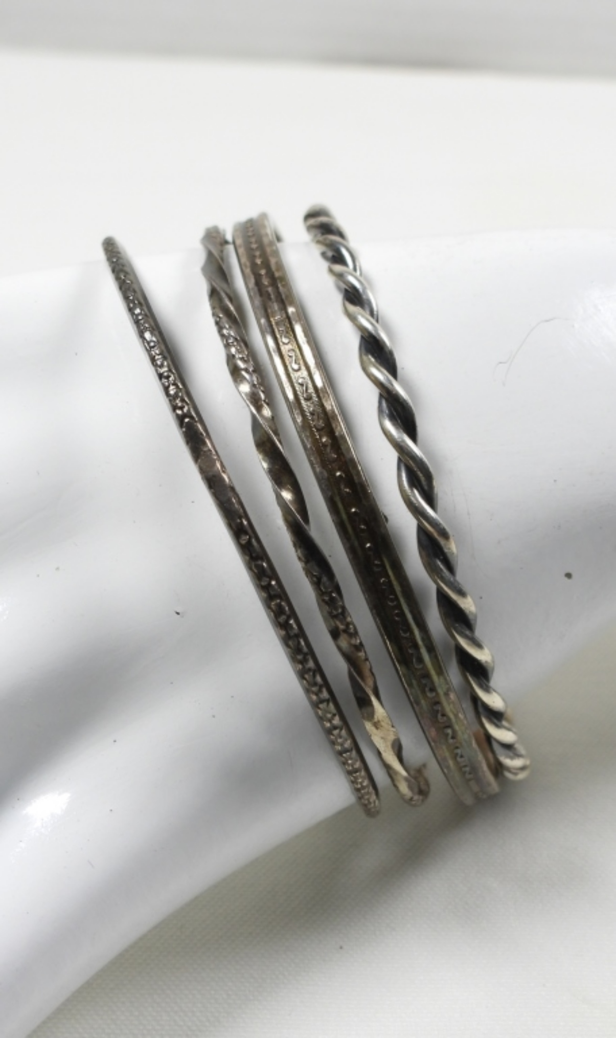 FOUR STERLING BANGLE BRACELETS (26.3 DWT)