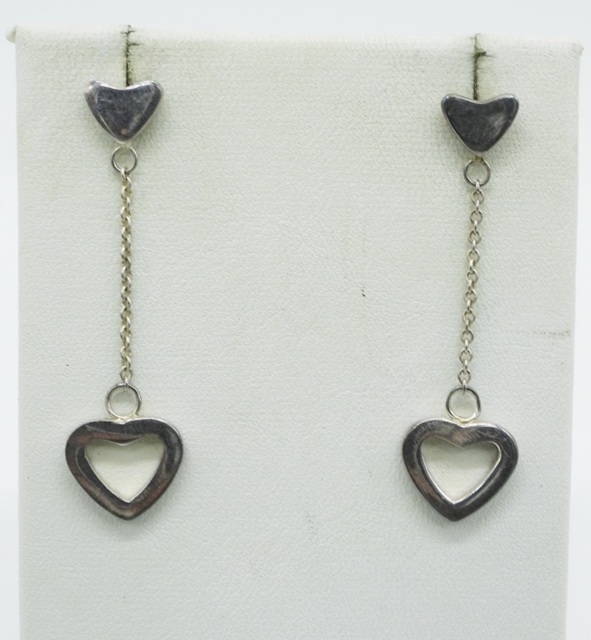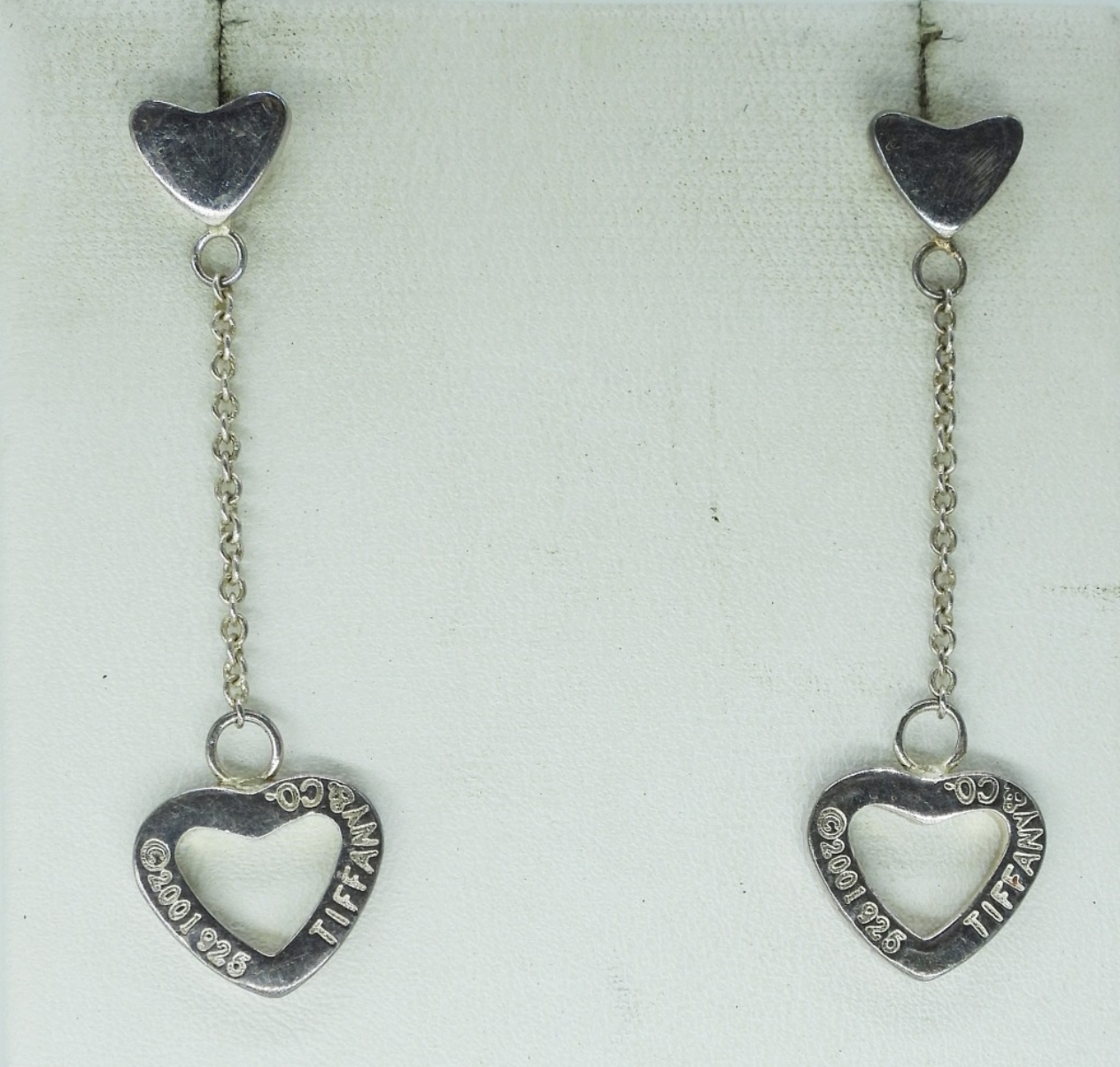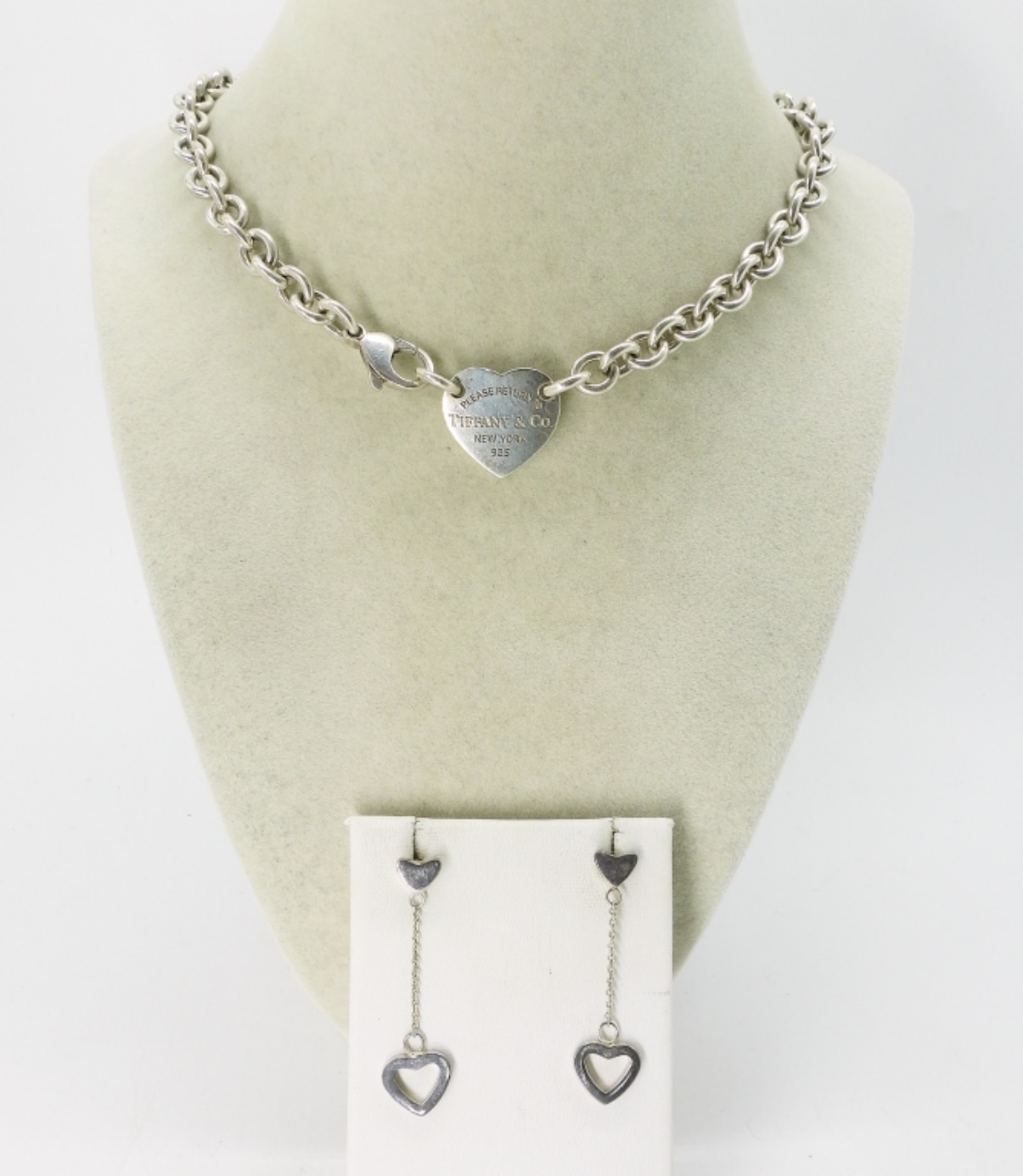 14″ STERLING TIFFANY & CO “RETURN TO” CHAIN NECKLACE. TIFFANY & CO STERLING HEART PIERCED EARRINGS, 2″ LONG. (38.6 DWT)