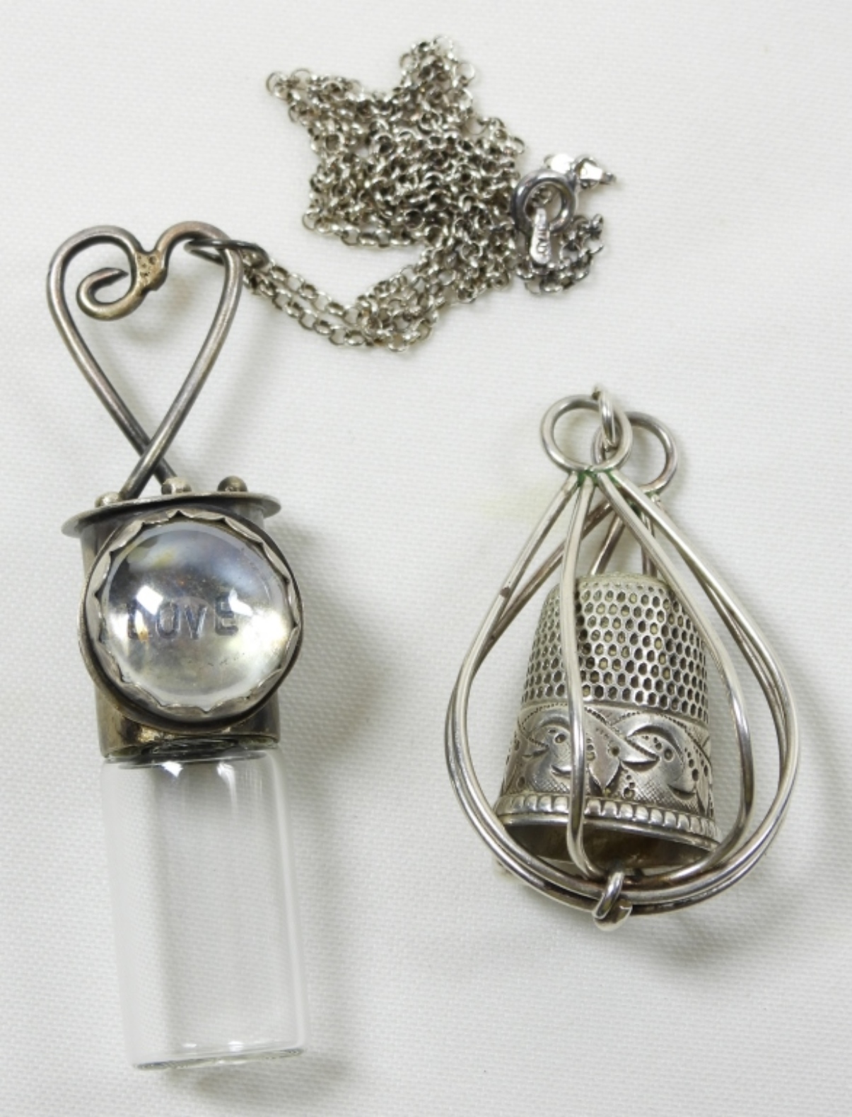 18″ STERLING CHAIN. GLASS BOTTLE WITH STERLING TOP, TOP COMES OFF. (21 DWT)
