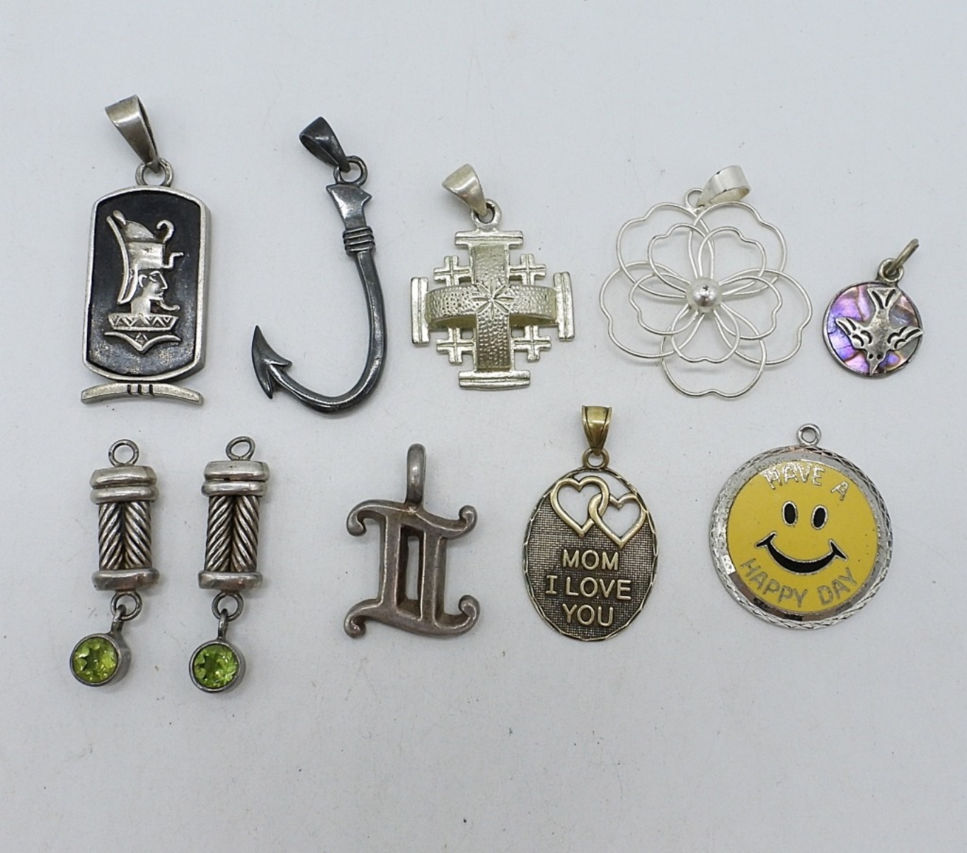 TEN STERLING PENDANTS / CHARMS. (16.2 DWT)