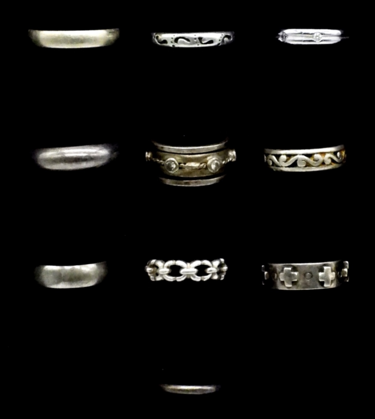 TEN STERLING RINGS, BANDS. SIZES 5-11 (25.1 DWT)