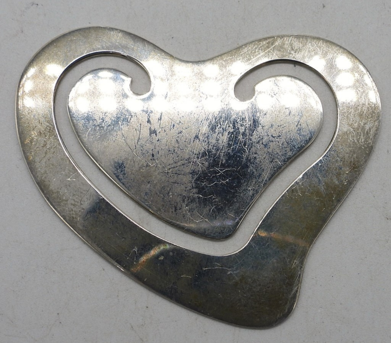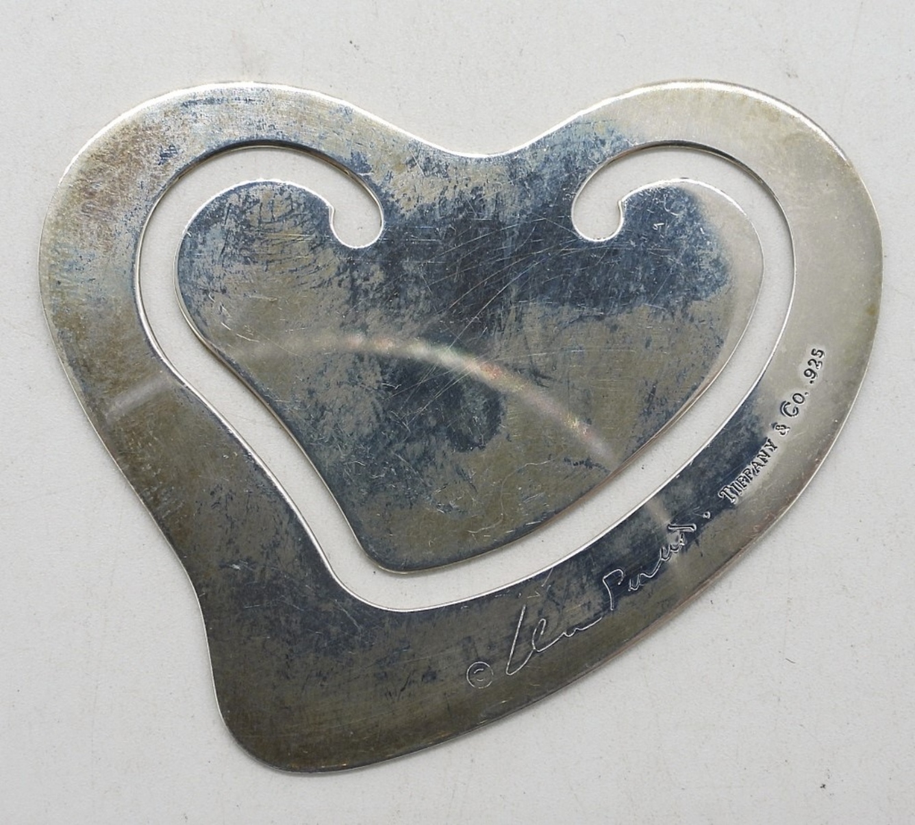 TIFFANY & CO, ELSA PERETTI STERLING HEART SHAPED BOOKMARK. 2″. (6.4 DWT)