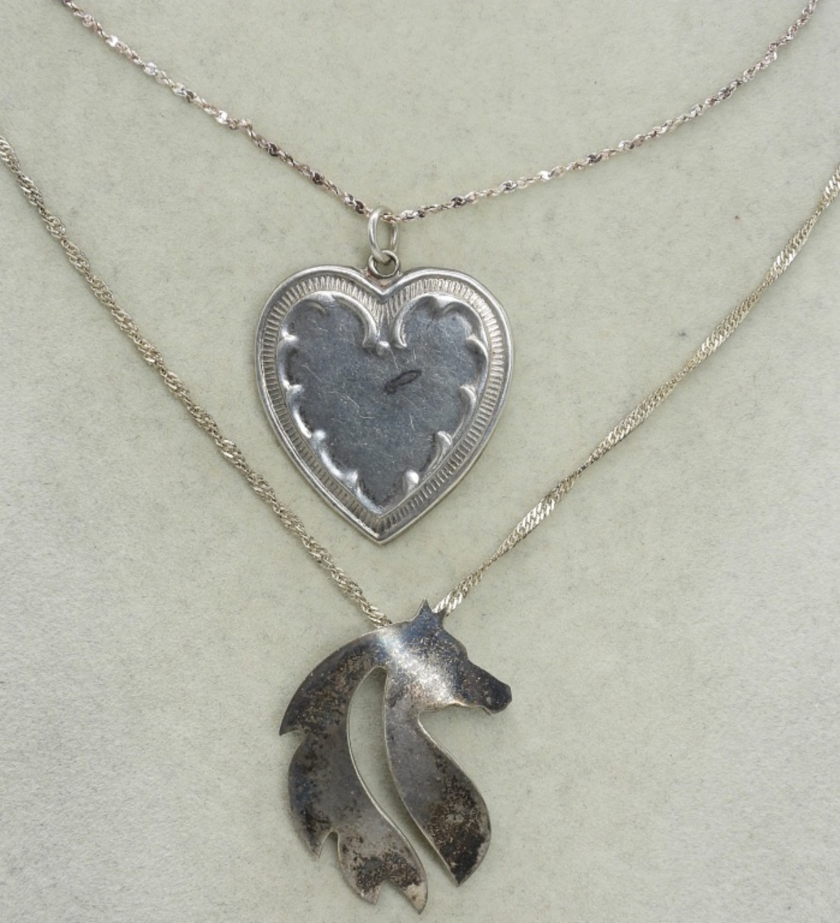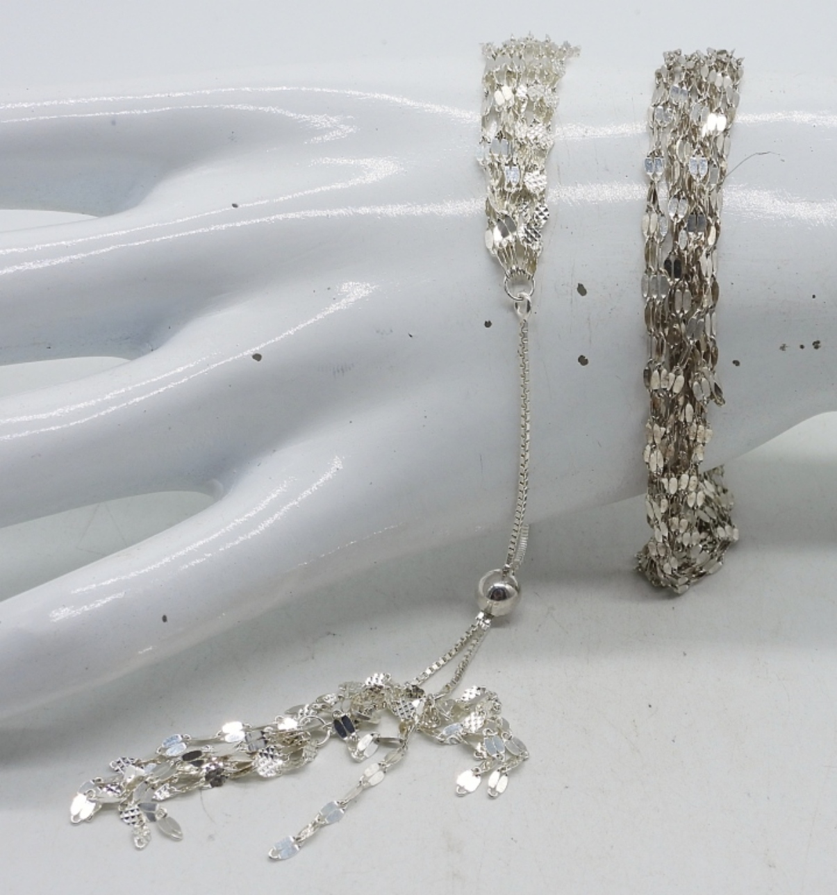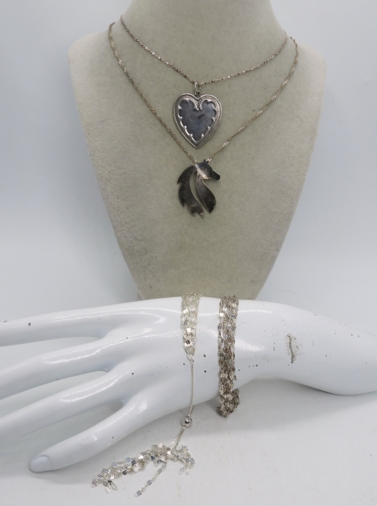 VINTAGE STERLING NECKLACES, 16″ & 20″. TWO STERLING BRACELETS, 7″ & 9″ ADJ. (17.8 DWT)