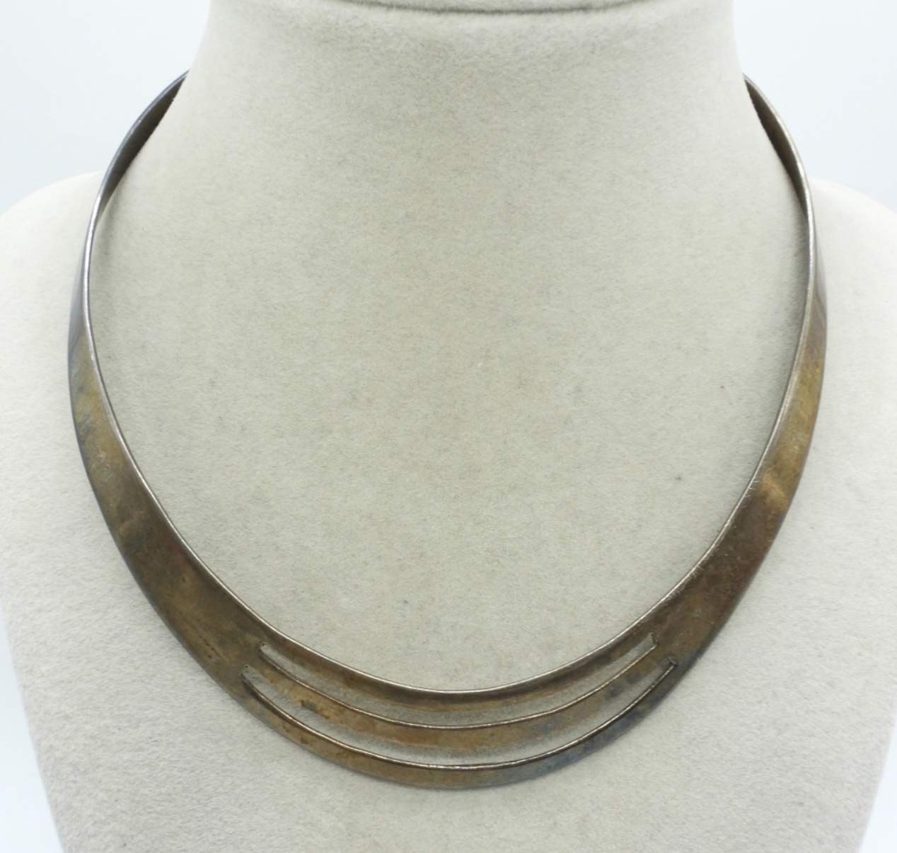 VINTAGE STERLING, COLLAR STYLE NECKLACE 14″. TARNISHED, NO MARKINGS (17.8 DWT)