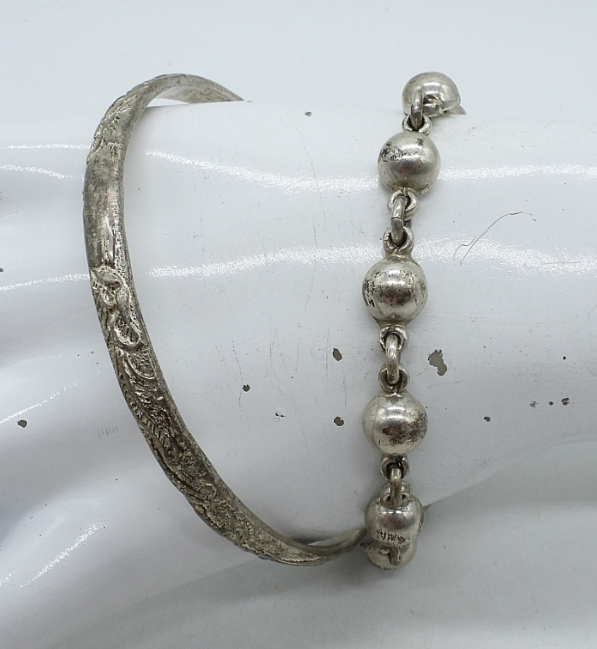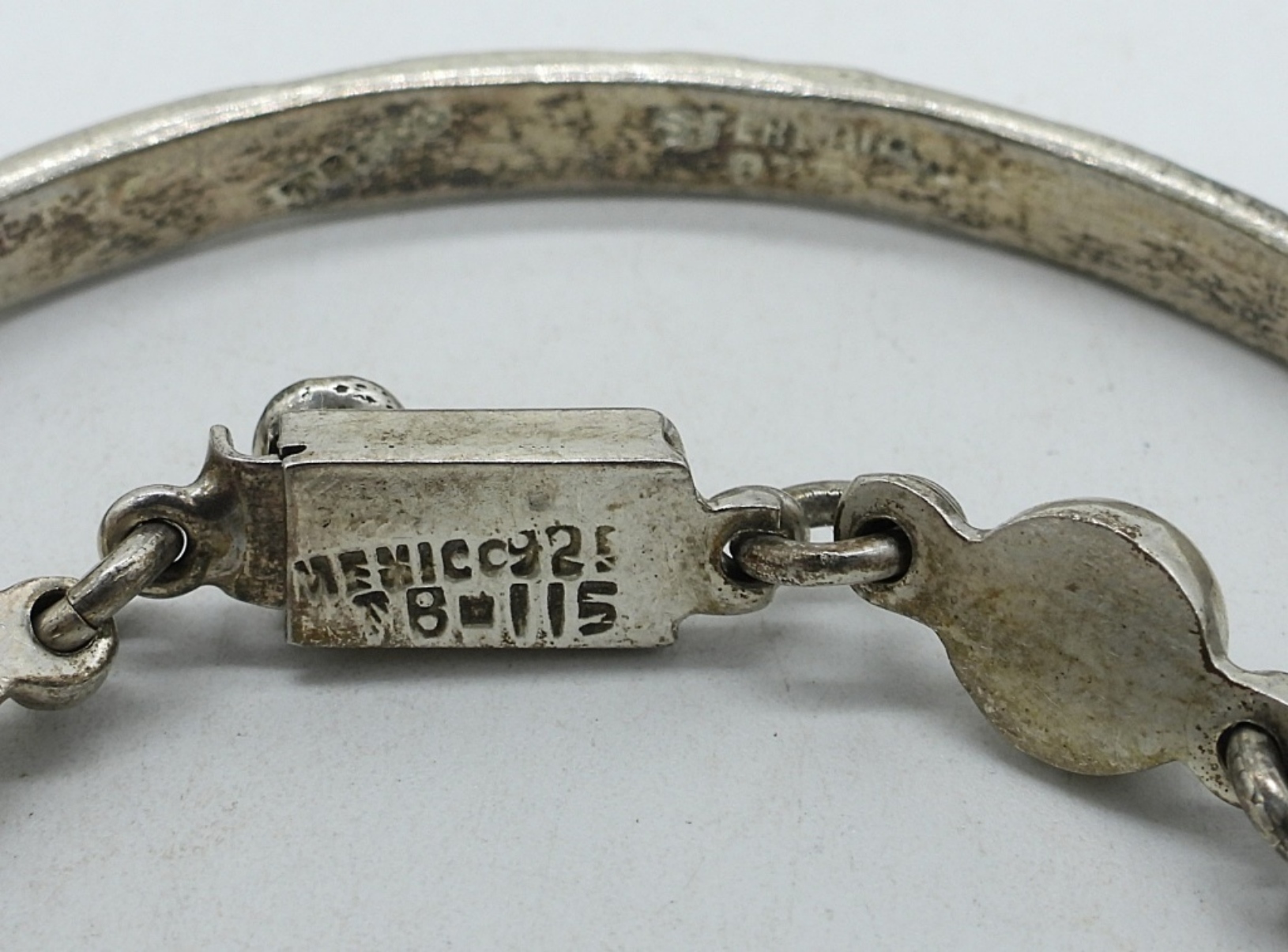 TWO STERLING TAXCO BRACELETS. BANGLE MARKED “TAXCO STERLING 925″. LINK BRACELET MARKED TB-115 MEXICO 925″, 7”. IN GOOD SHAPE. (24.1 DWT)