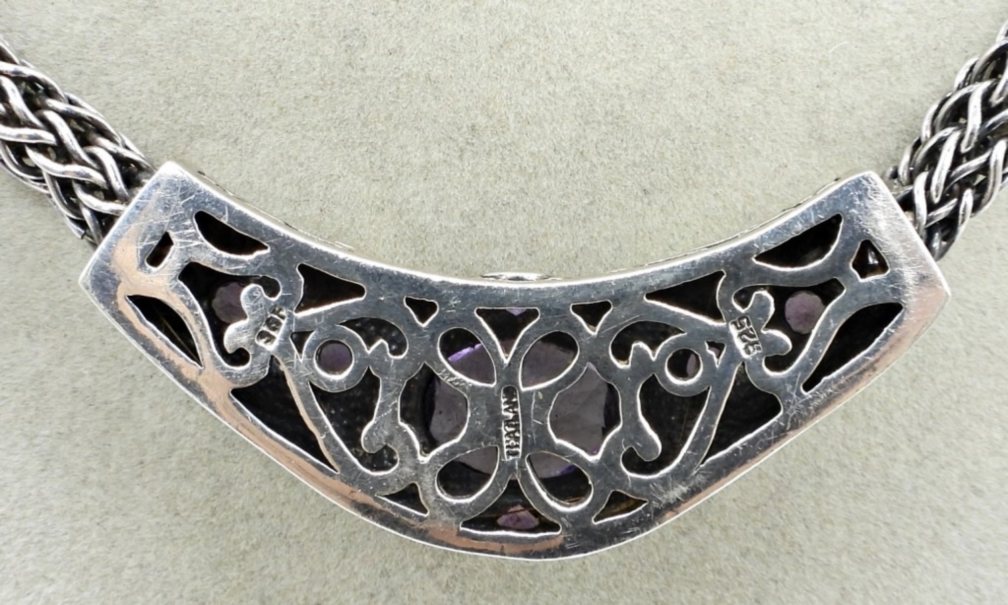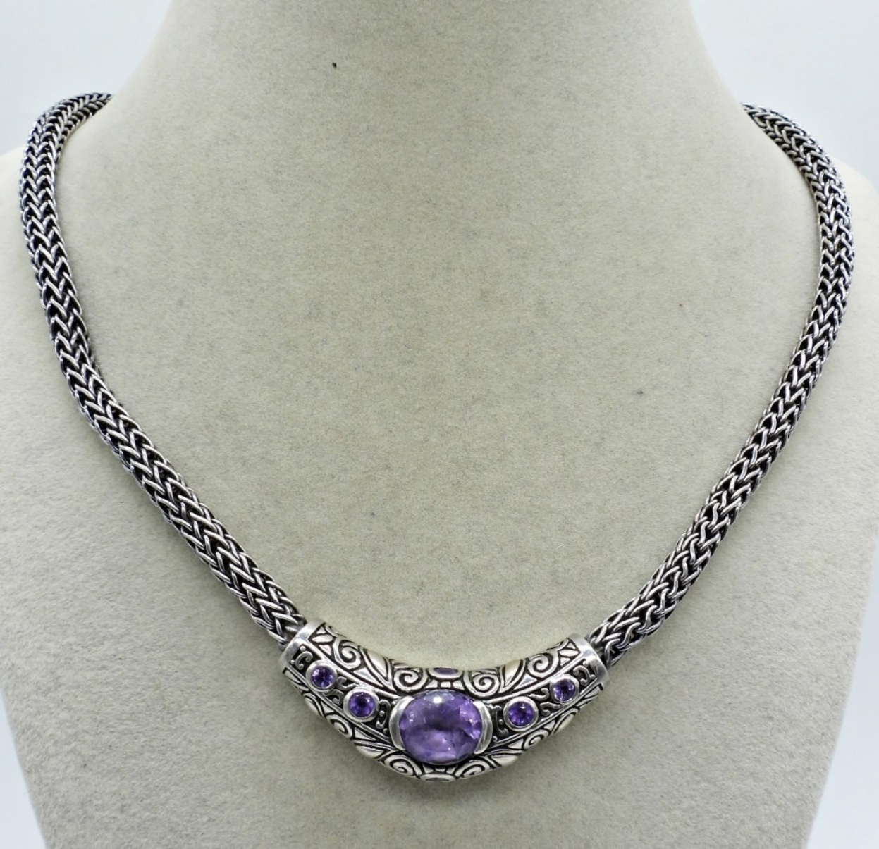 THICK STERLING FASHION NECKLACE WITH AMETHYST GEMSTONE. 18″ (35.4 DWT)