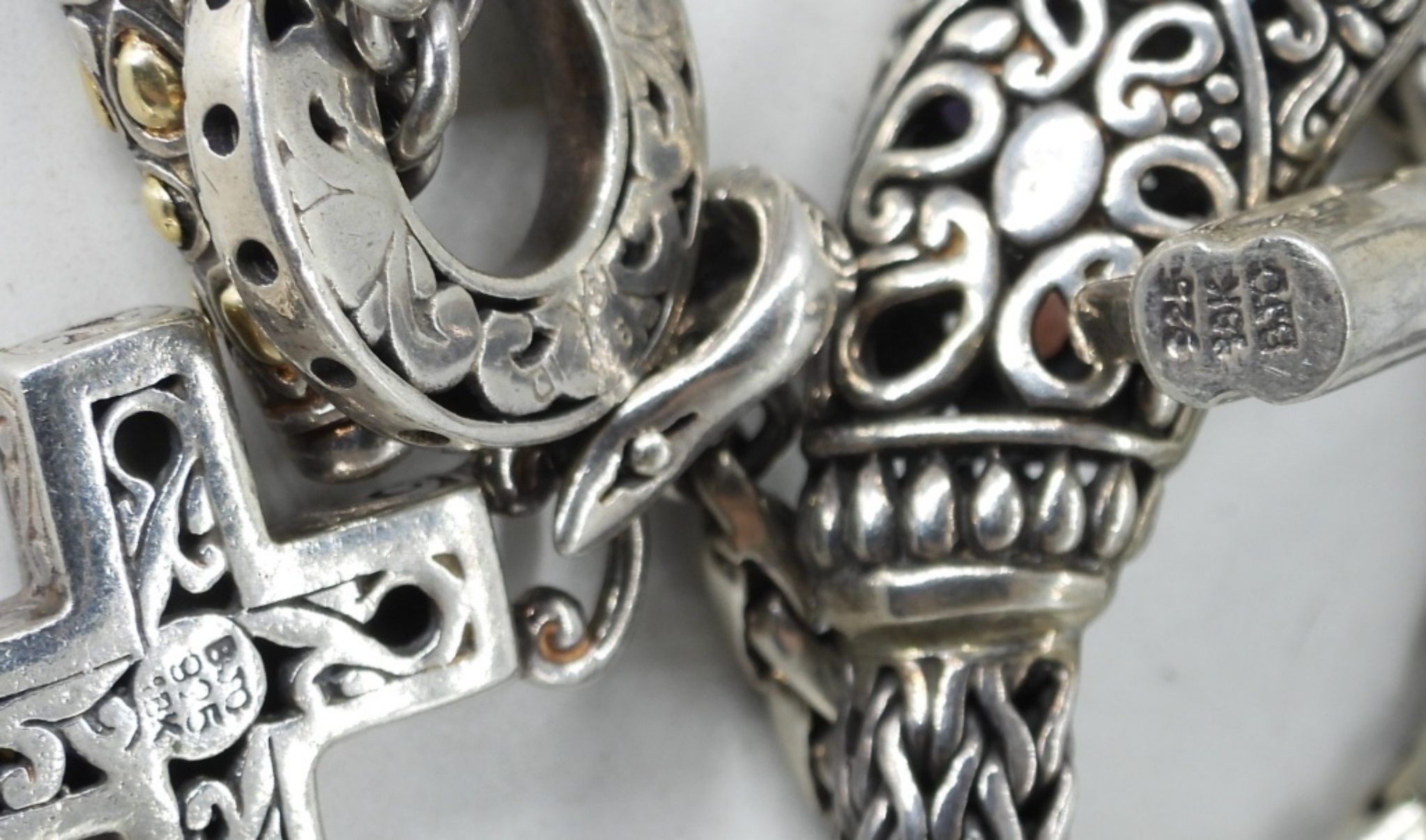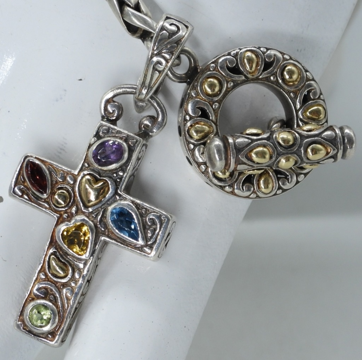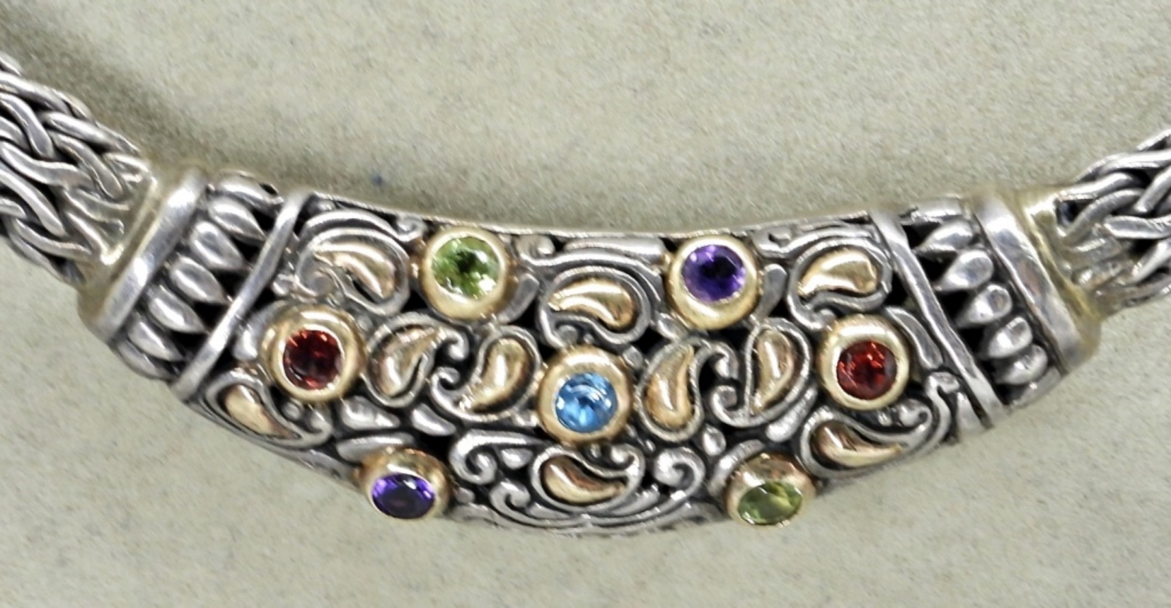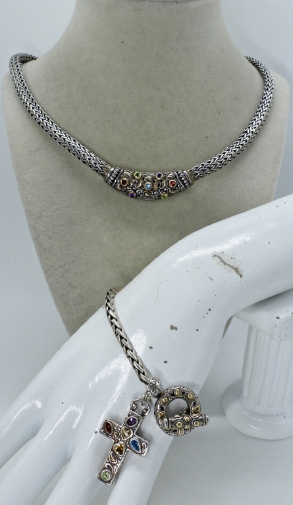 BJC SAMUEL BENHAM STERLING / 18KYG NECKLACE & BRACELET. NECKLACE IS 19″. BRACELET IS 8″. 18K YELLOW GOLD IN SMALL ACCENTS! (76 DWT)