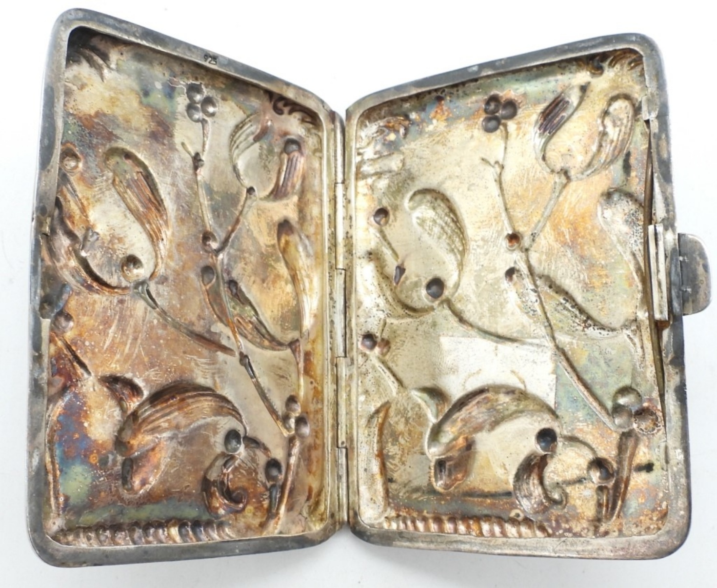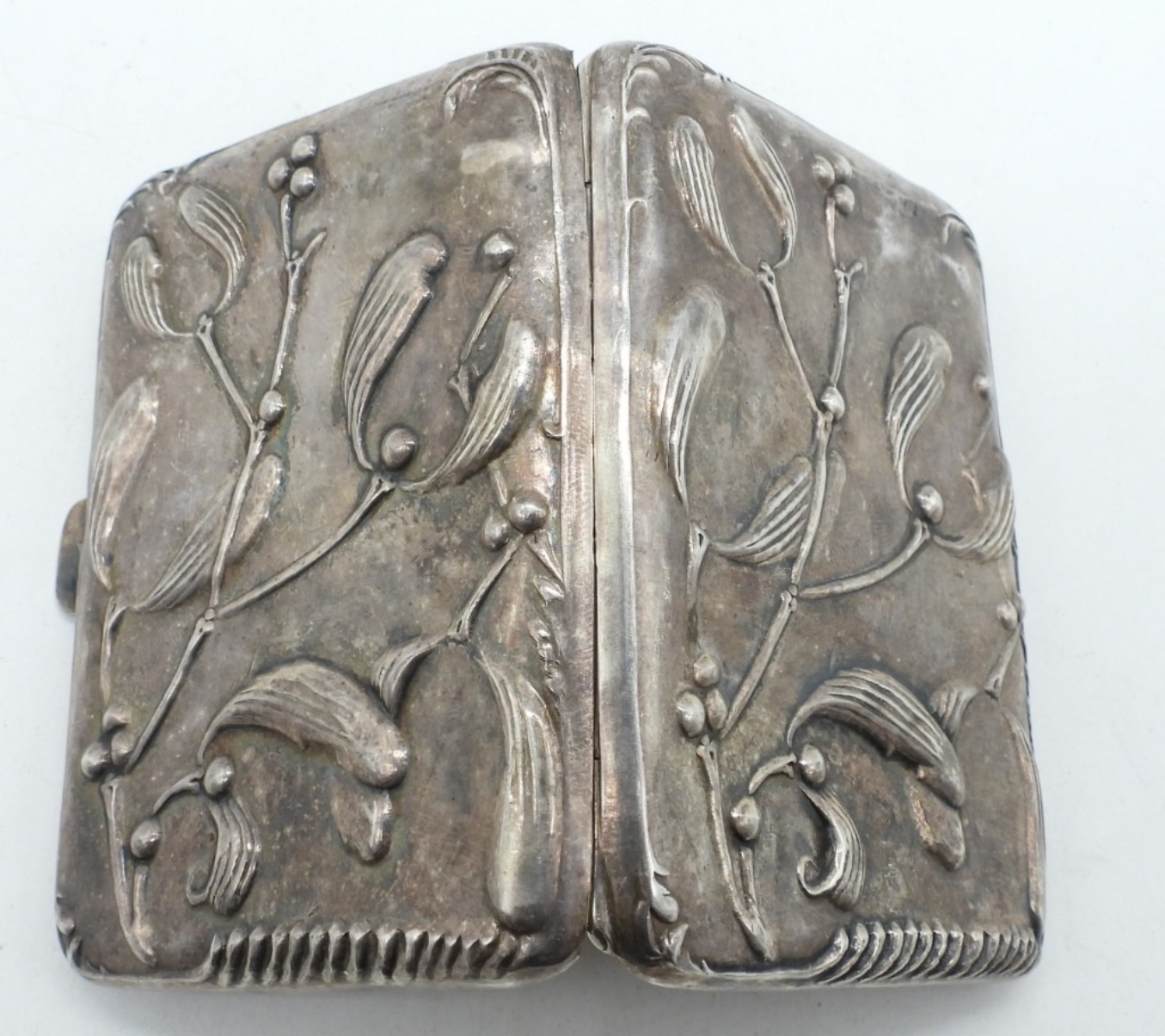 STERLING VINTAGE CIGARETTE CASE, 3″ x 2″. MARKED 925 INSIDE. SOME DENTS. (37.8 DWT)