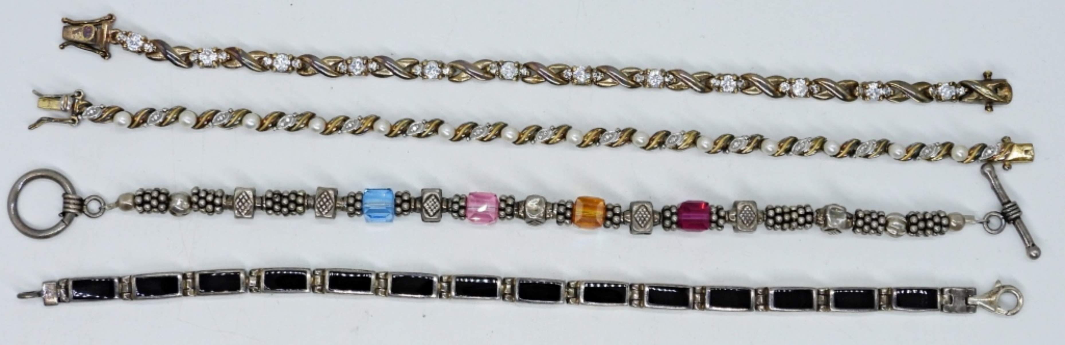 7″ – 7.5″. FOUR STERLING BRACELETS (32 DWT)