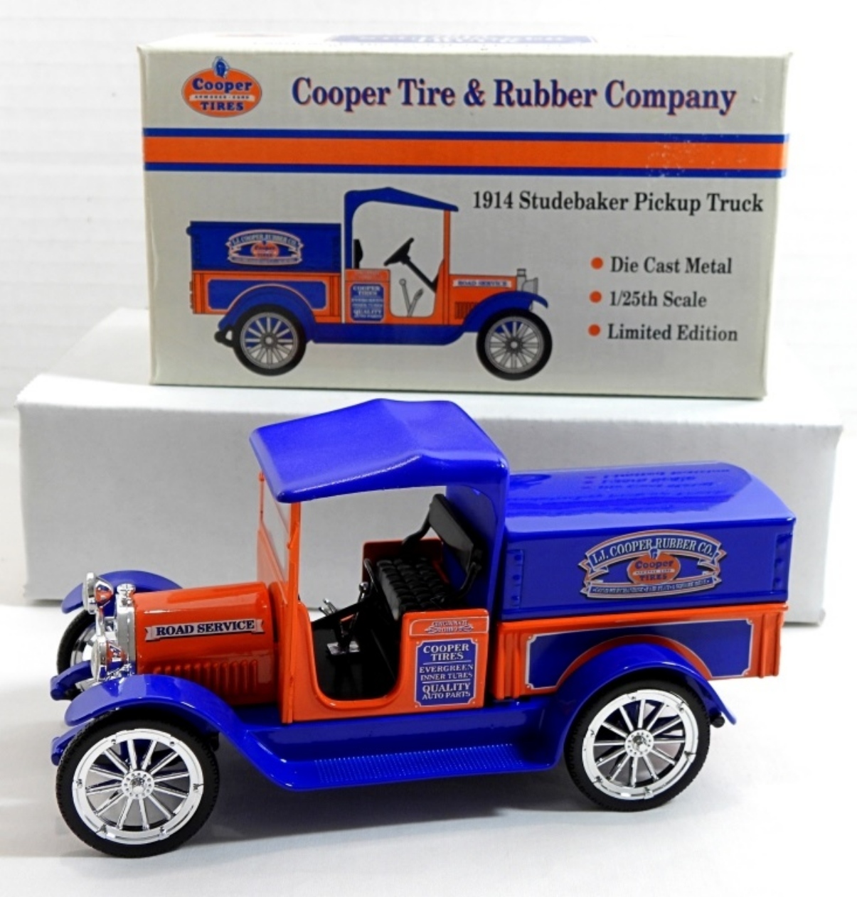 1993, STOCK #22508, STILL IN ORIGINAL BOX, DIE CAST METAL, 1/25TH SCALE, LIMITED EDITION 1914 STUDEBAKER PICKUP TRUCK, DIE CAST METAL LOCKABLE COIN BANK