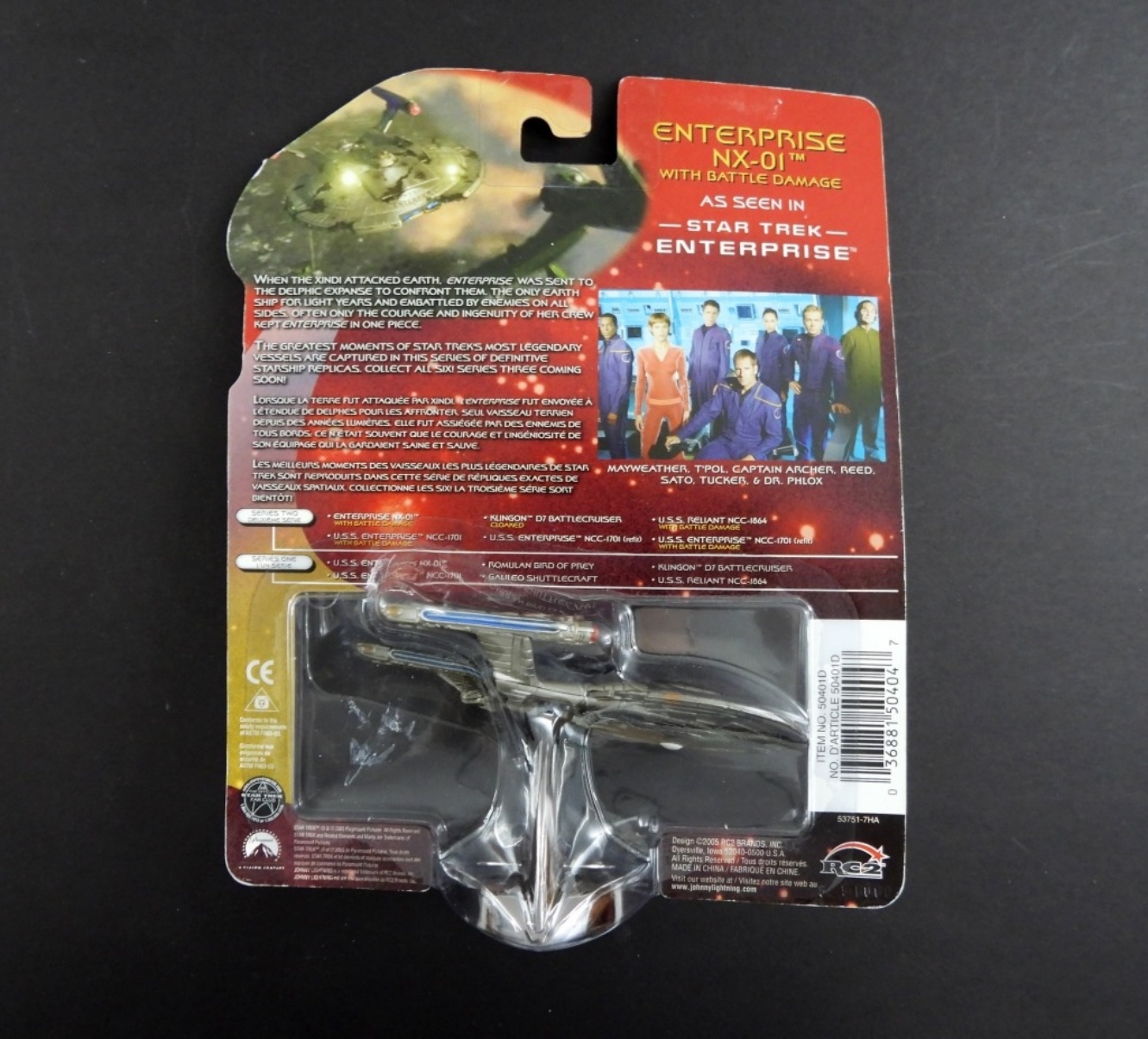 2005 LEGENDS OF STAR TREK ENTERPRISE NX-01 WITH BATTLE DAMAGE AND PLAYMATES STAR TREK THE NEXT GENERATION INNERSPACE, BID NOW!