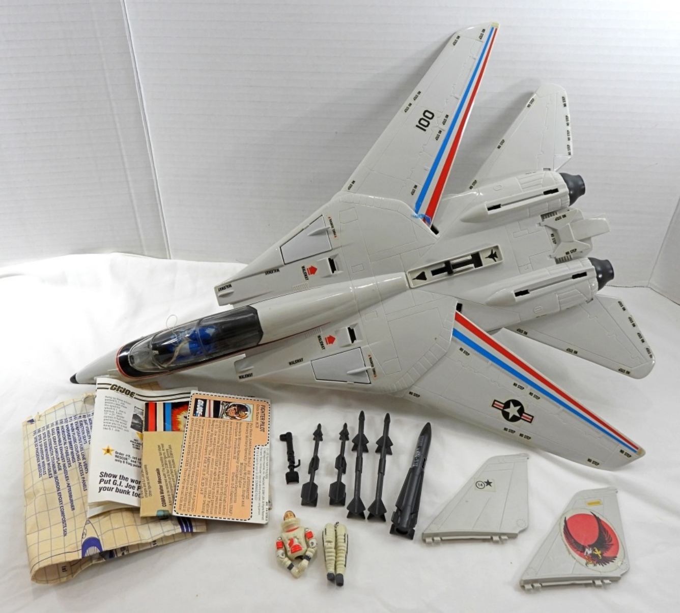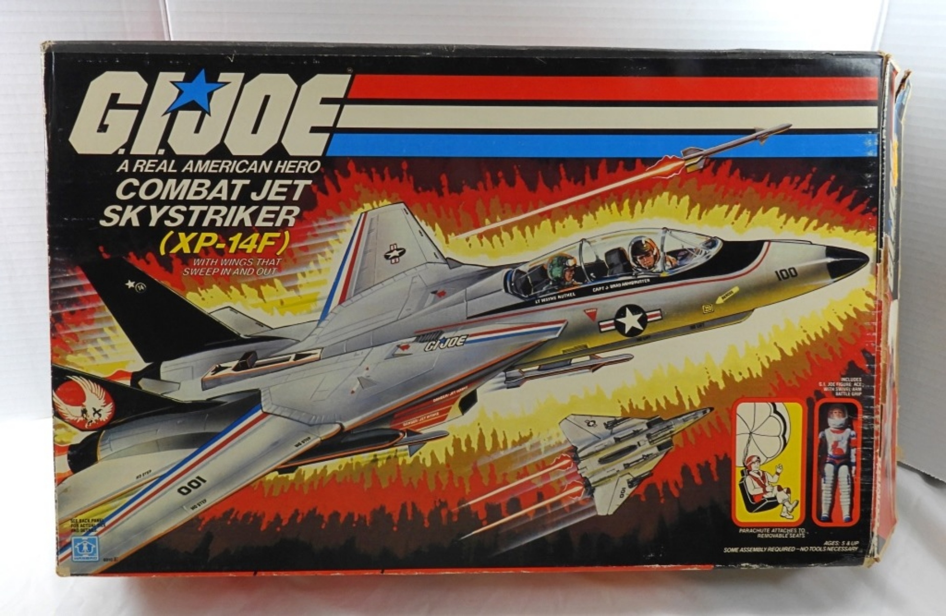 1983 G.I. JOE A REAL AMERICAN HERO COMBAT JET SKYSTRIKER, IN ORIGINAL BOX, LEGS ON G.I. JOE ACTION FIGURE ARE BROKEN OFF