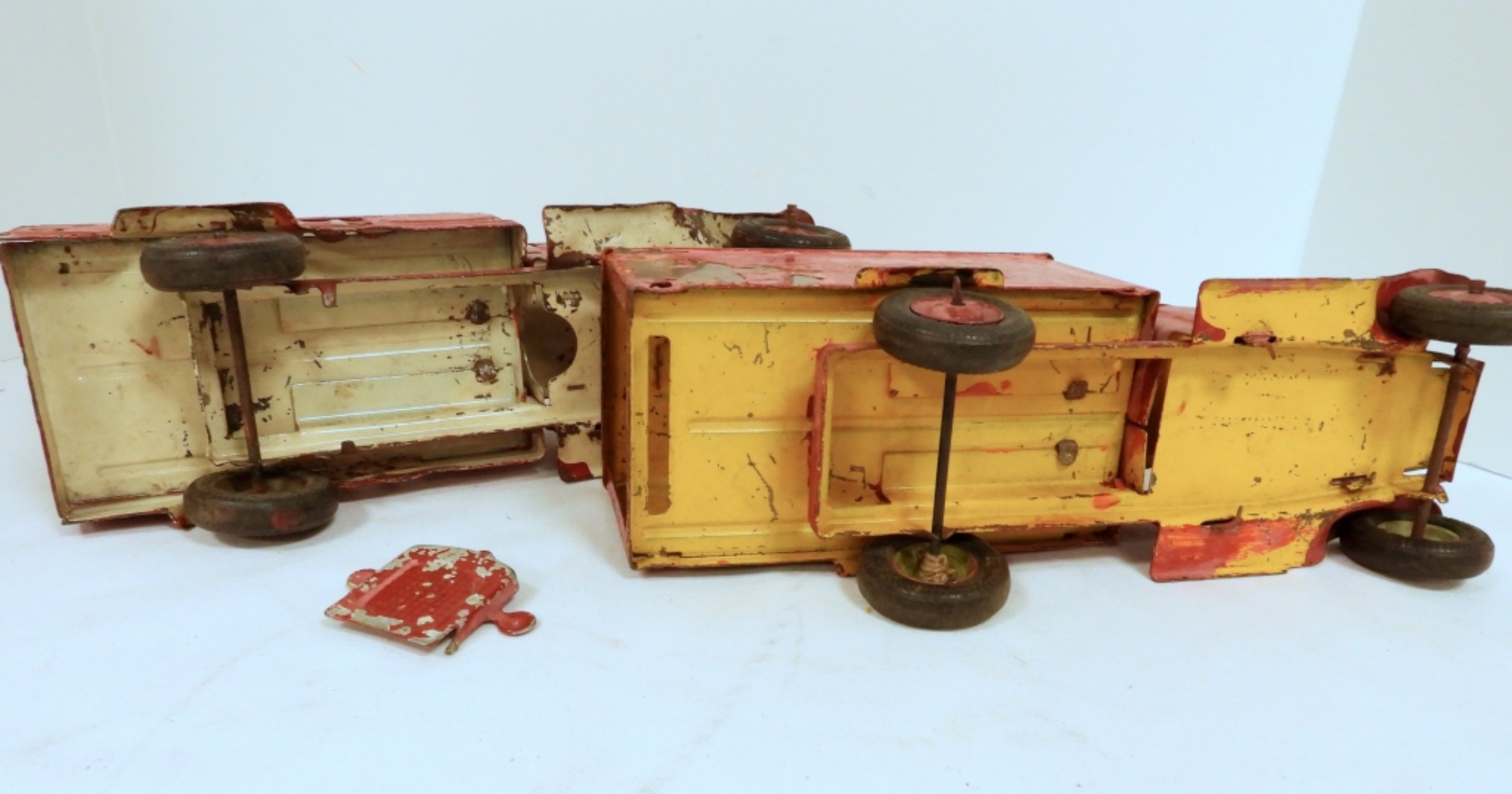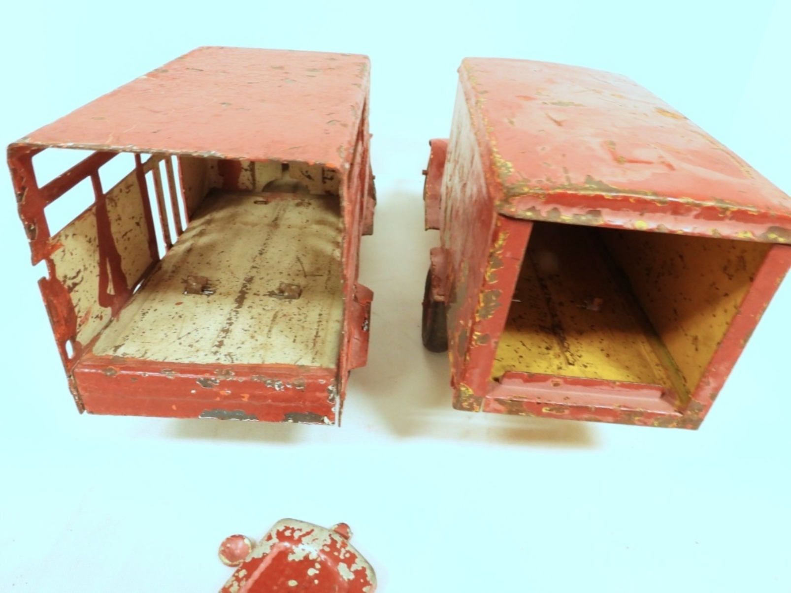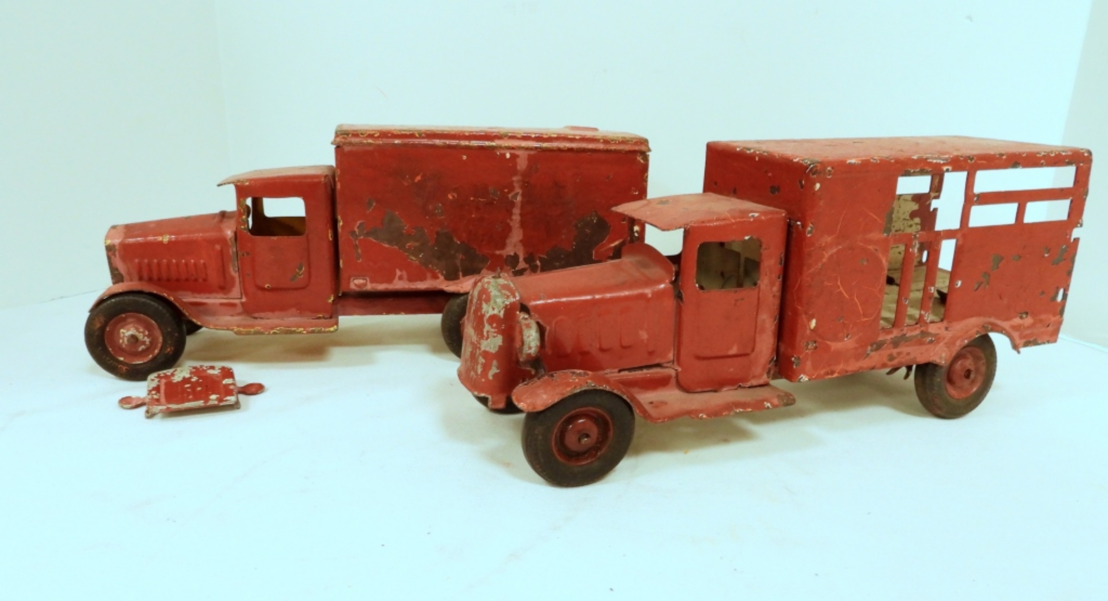 (1) NEEDS FRONT PIECE RE-ATTACHED, BOTH LOOK TO BE PAINTED & MISSING BACK DOOR