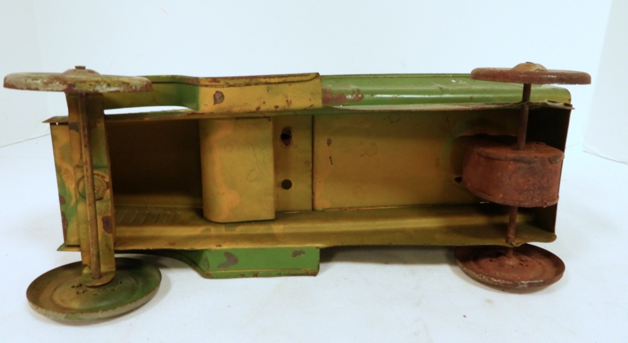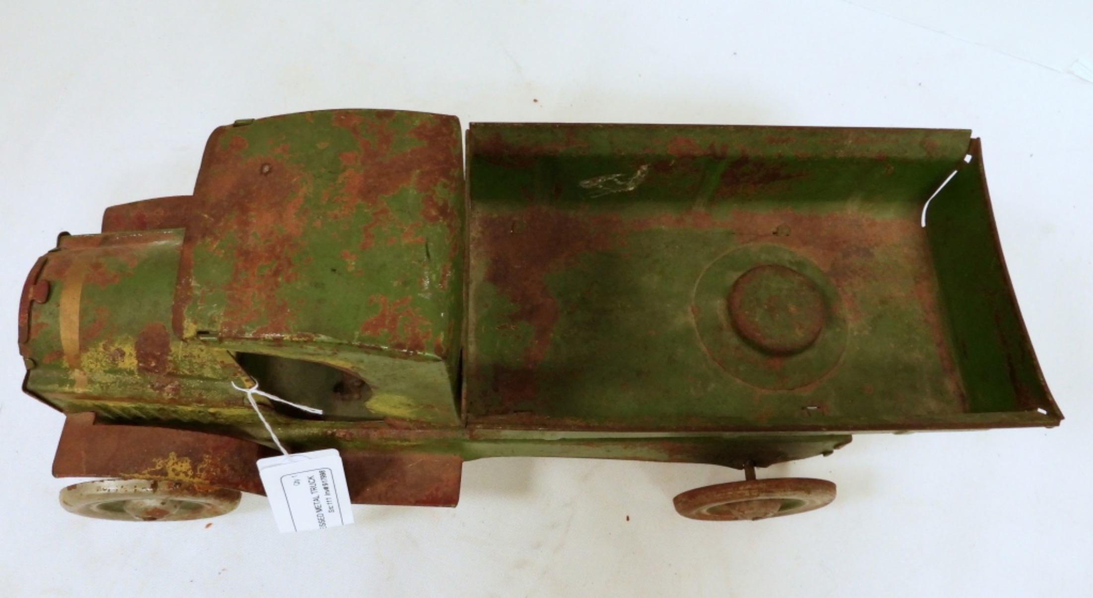 METAL WHEELS – BACK WHEELS LOCKED UP & WILL NOT TURN – APPROX 13″ LONG