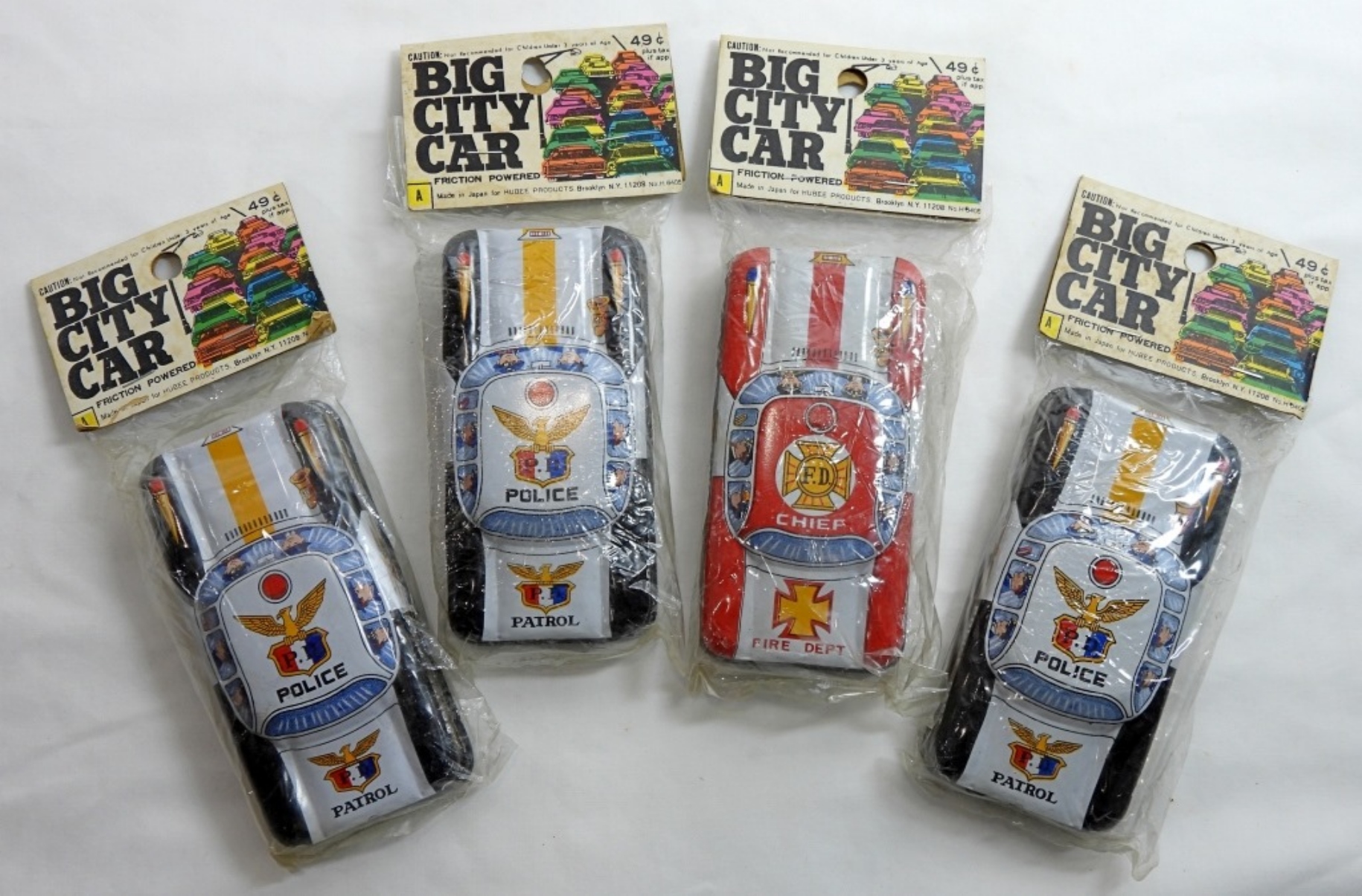(4) BIG CITY CAR POLICE/FIRE CARS, IN GREAT CONDITION, IN ORIGINAL PACKAGING