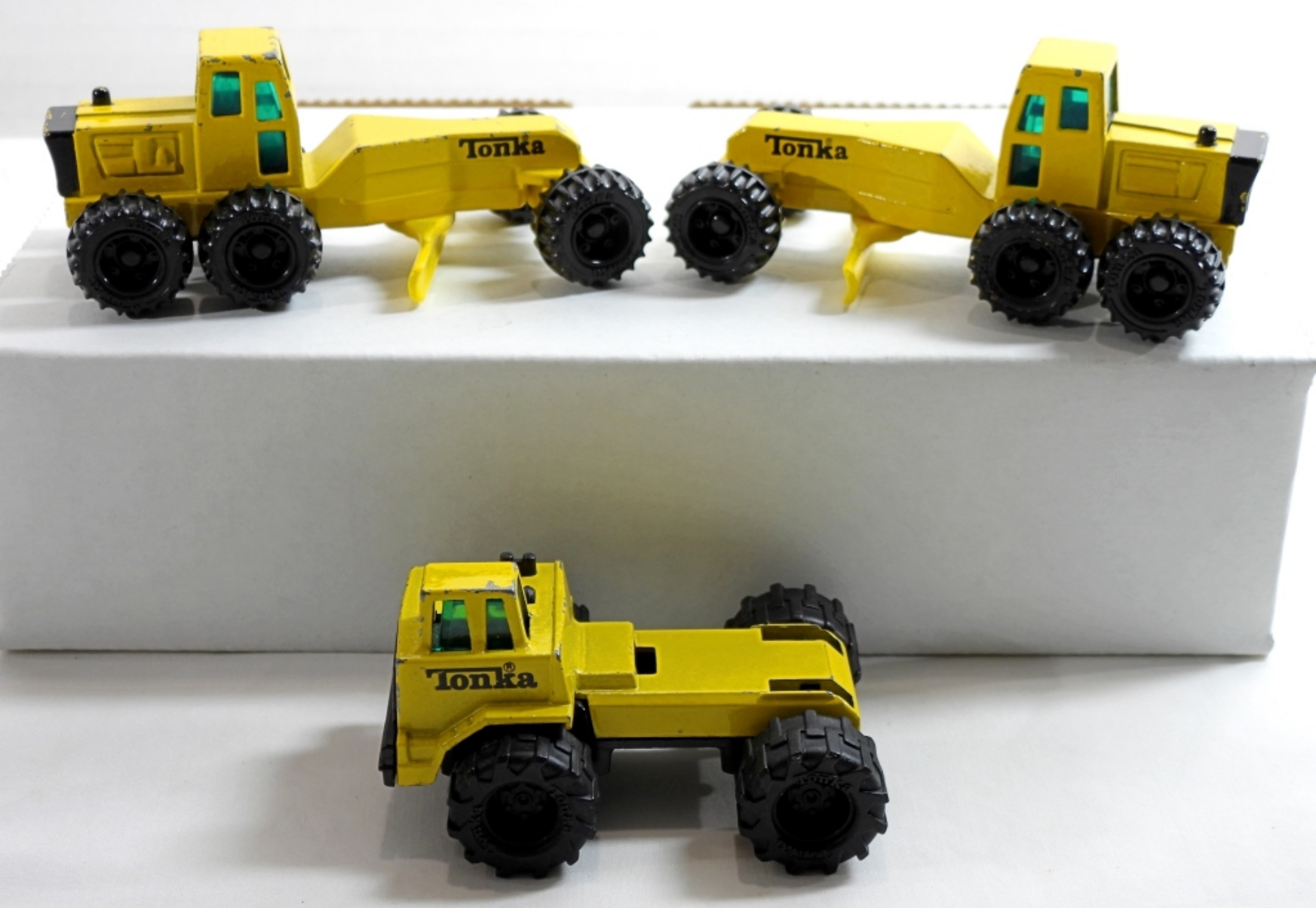 (3) 1992-94 TONKA TRUCK TRACTORS- 2 1994 TONKA STEEL ROAD GRADER, 1992 TONKA MIGHTY DUMP TRUCK, DUMP TRUCK IS MISSING THE DUMP