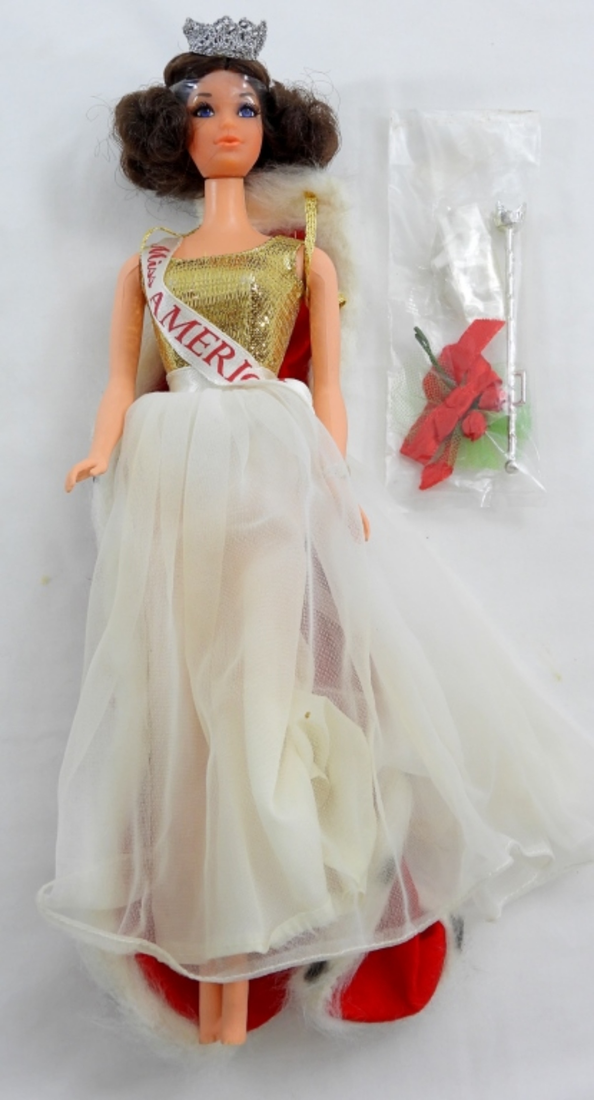 COMES WITH CAPE, CROWN, SCEPTRE, ROSES, SHOES, CAPE NO MARKING FOUND