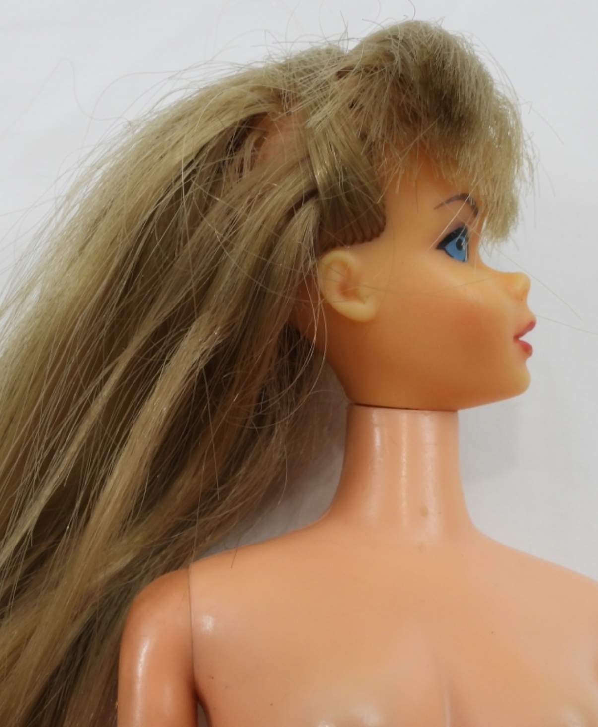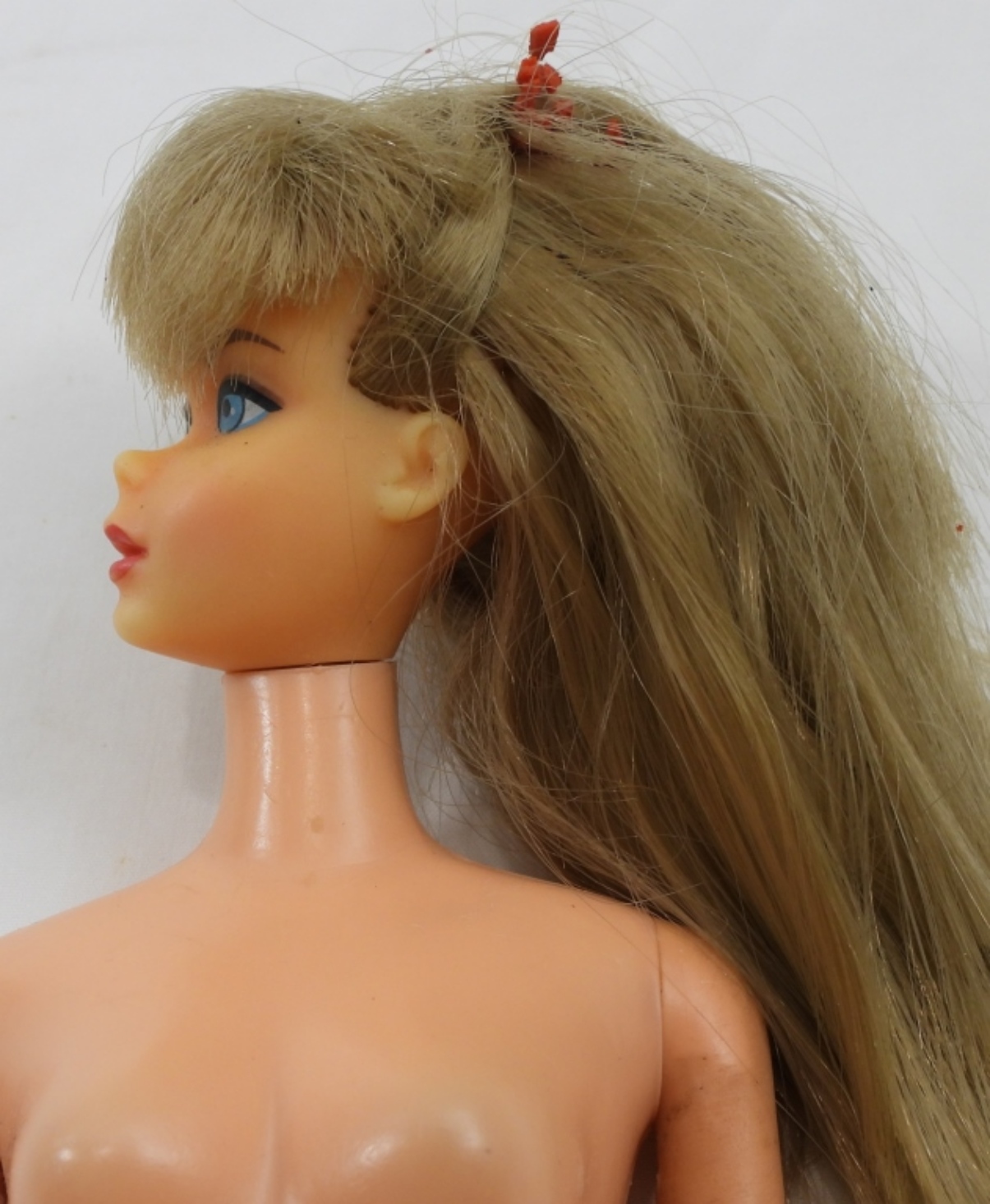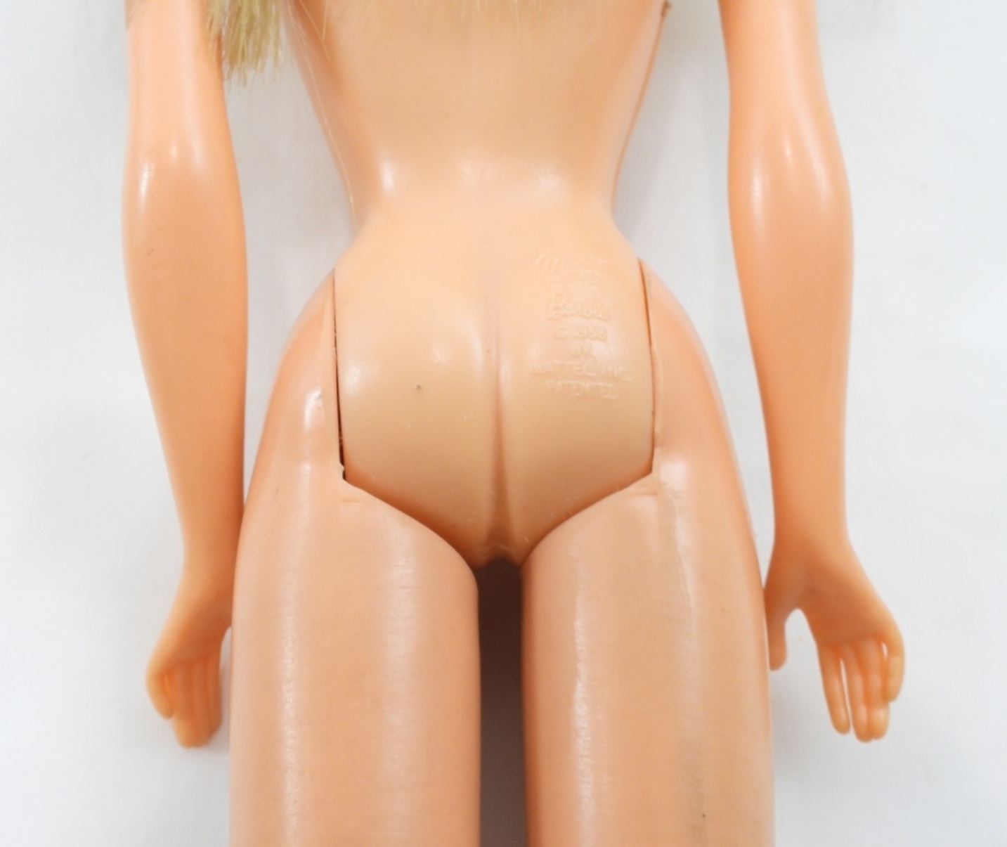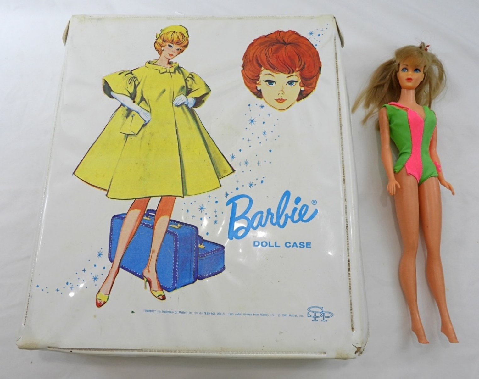 1- MIDGE IN GREEN AND PINK SWINSUIT, STAMPED MIDGE 1962 ON THE BUTT ALONG WITH BARBIE STAMP, DOLL IN GOOD CONDITION NAIL POLISH HAD FADED, BARBIE CASE HAS SOME RIPS FROM THE YEARS, CLOTHES AND AND BEDDING LOOK IN GOOD
