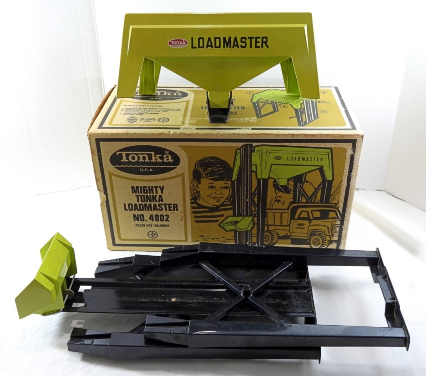 ORIGINAL 1970S TONKA MIGHTY LOADMASTER NO. 4002, UNTESTED, WE DID NOT TEST TO SEE IF THIS TOY WAS IN RUNNING WORKING CONDITION – in ORIGINAL BOX