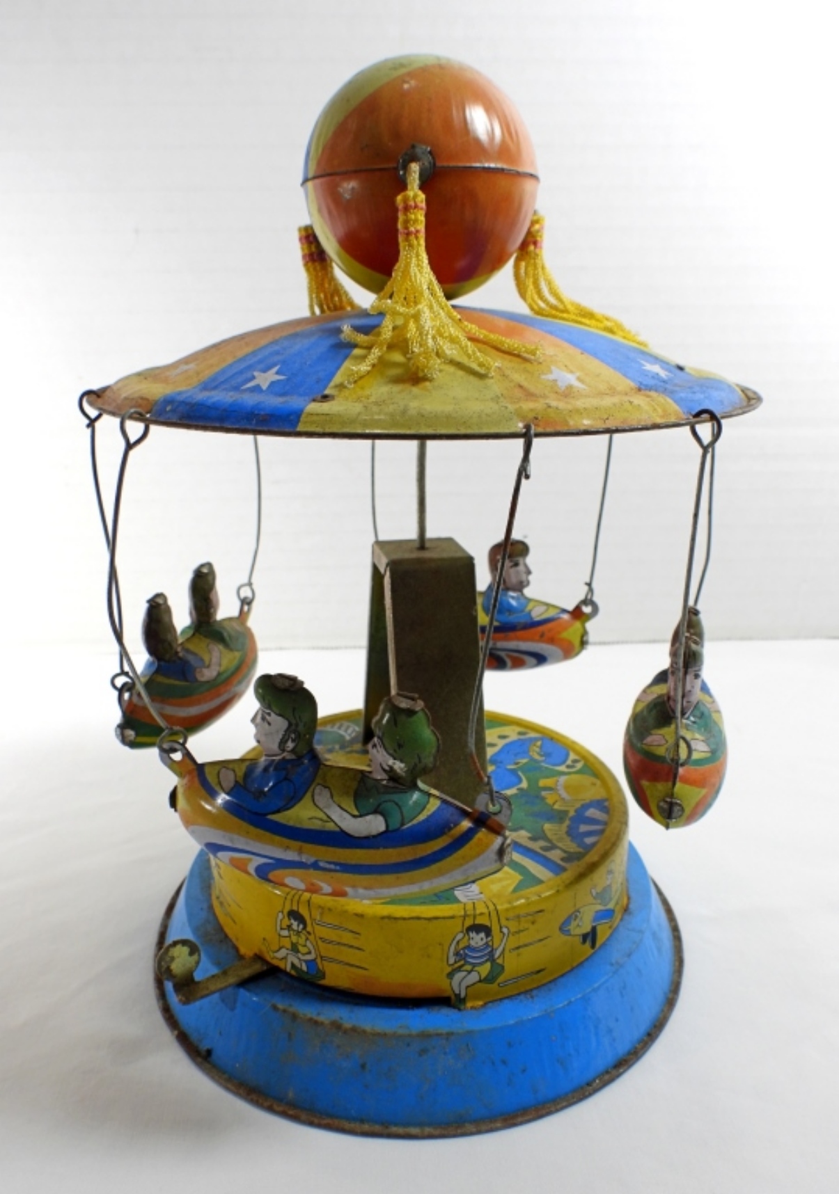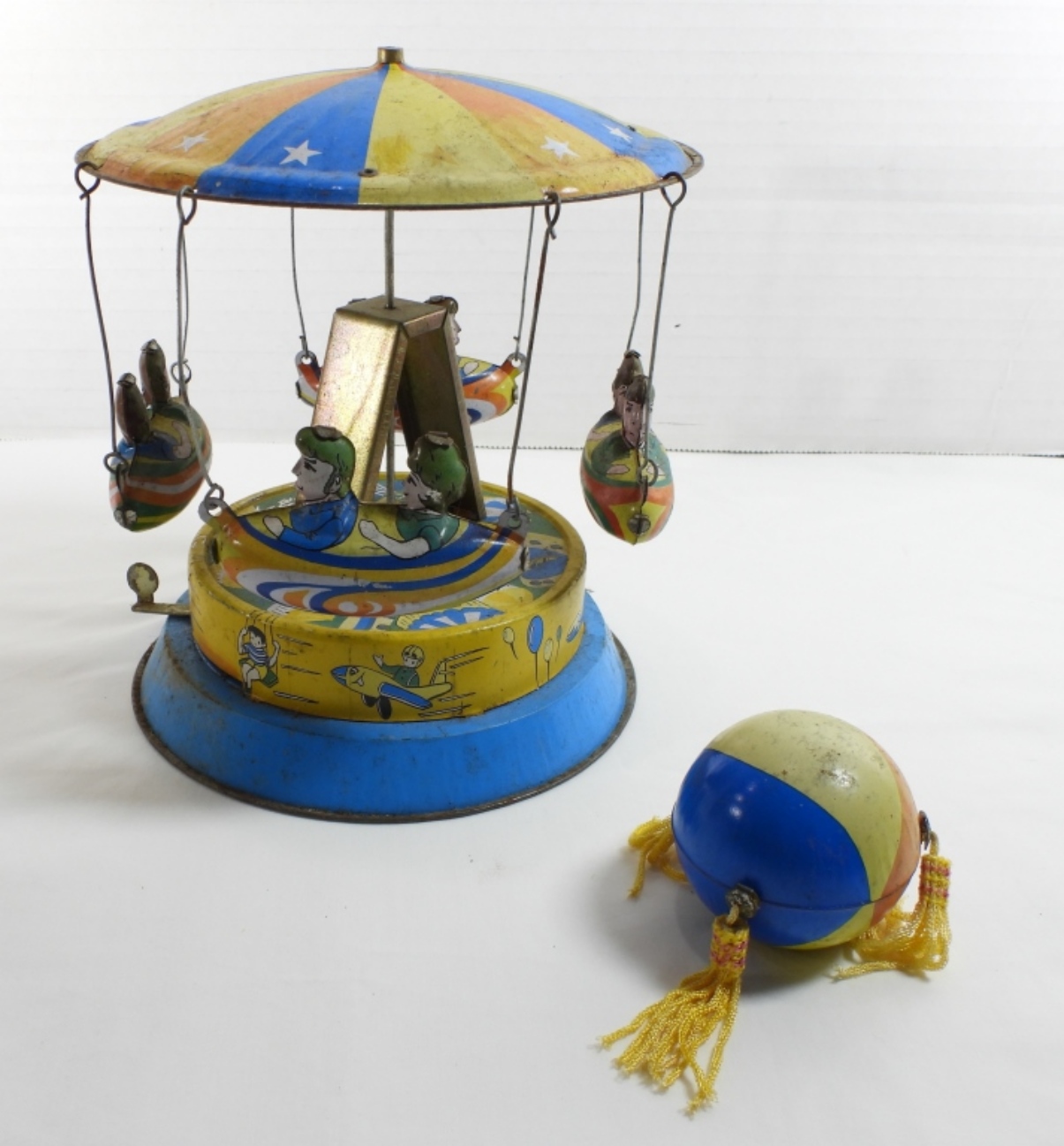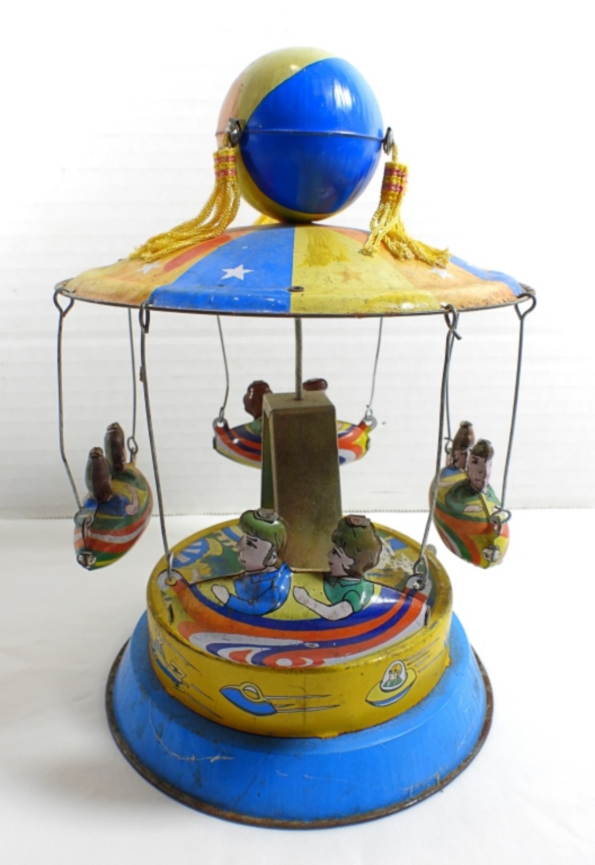 VINTAGE TIN TOY CAROUSEL: NOT WORKING FOR DISPLAY OR REPAIR ONLY 6” DIAMETER
