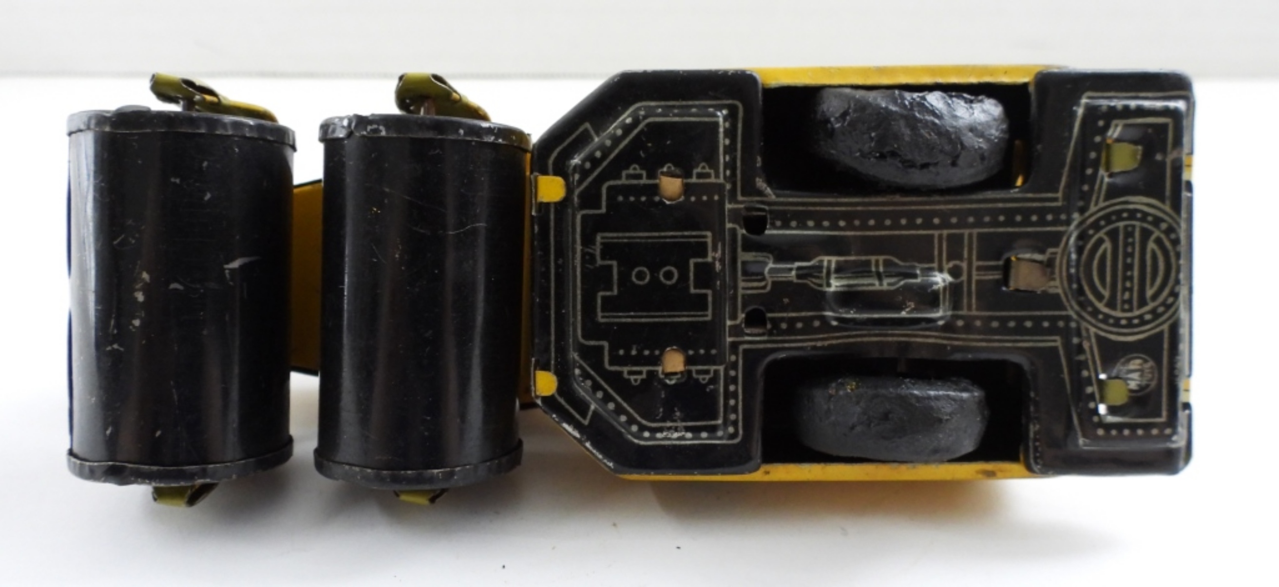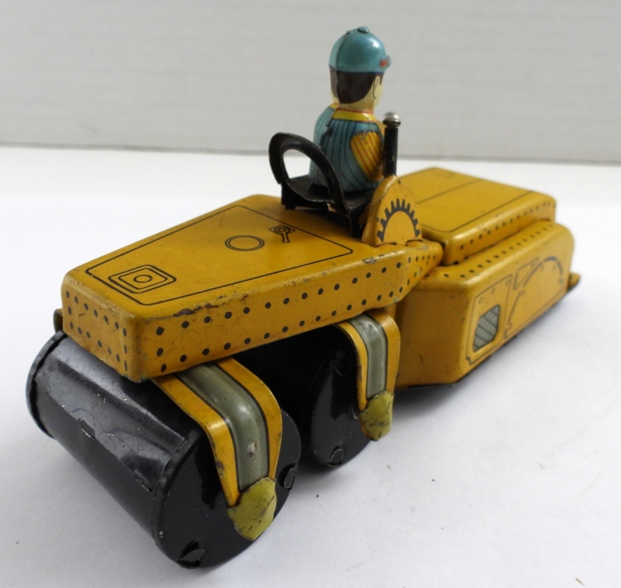 LINE MAR TOYS FRICITION TOY ROLLER IN GOOD CONDITION DOES HAVE SOME WEAR TO IT. THE TIRES ARE IN ROUGH SHAPE AND DO NOT TURN ALL OF THE WAY, THE ROLLERS ARE IN GOOD CONDITION. WITH THE TIRES UNSURE IF IT IS IN