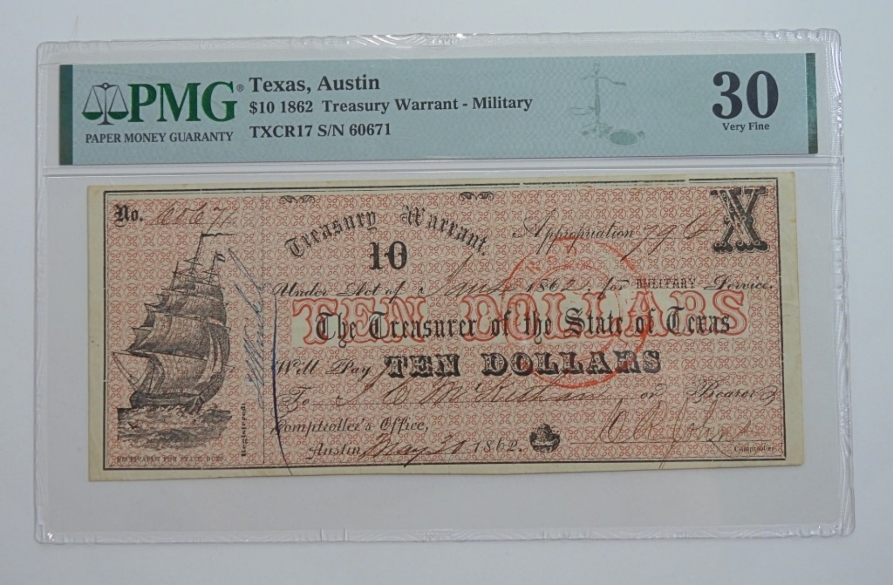 $10 1862 TREASURY WARRANT – MILITARY