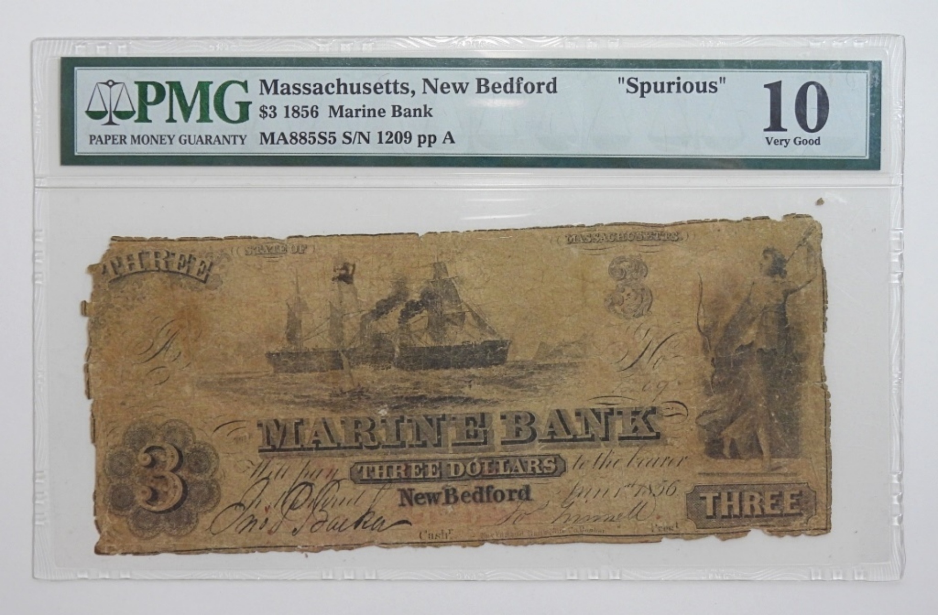 $3 1856 MARINE BANK – OBSOLETE NOTE