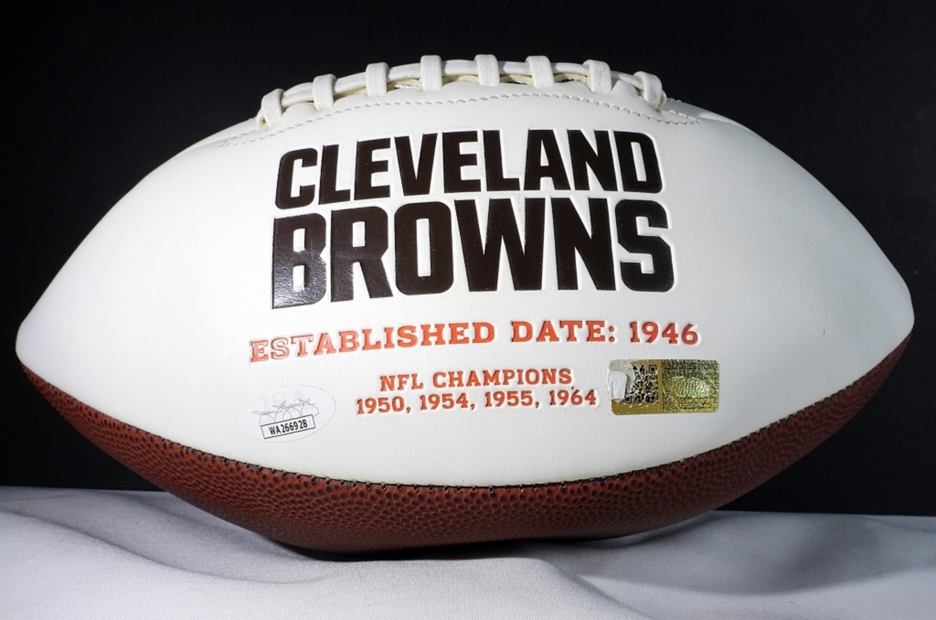 JEROME FORD #34 CLEVELAND BROWNS EST. 1946 FOOTBALL. DOES HAVE A JSA STICKER BUT WHEN TYPED INTO THE DATEBASE COMES BACK AS A SIGNED JERSEY INSTEAD