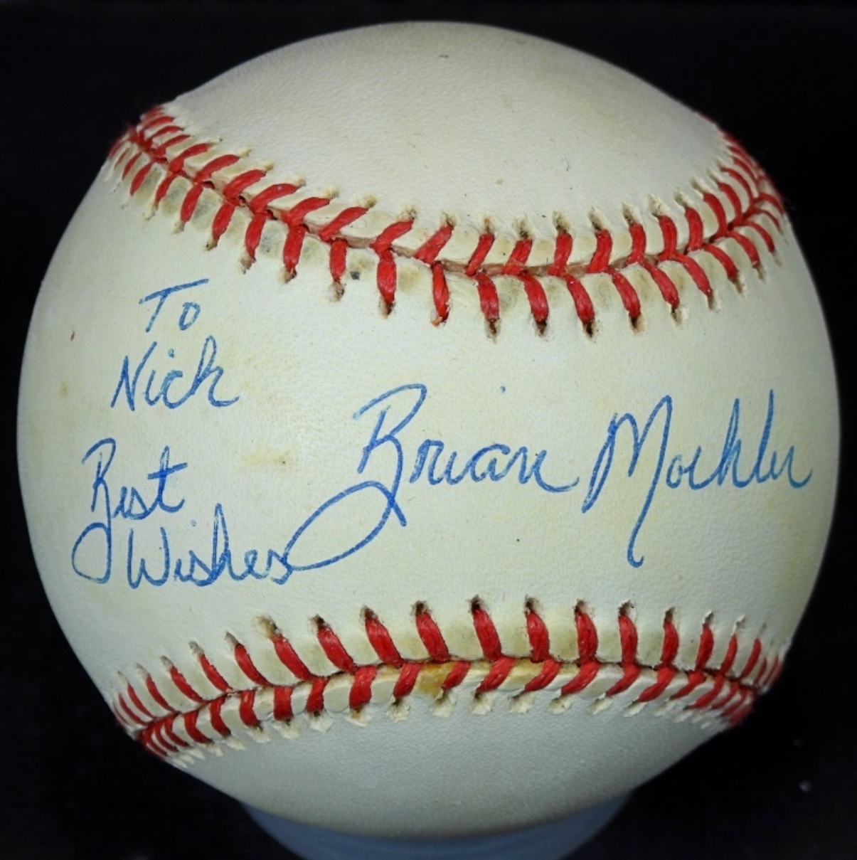 “TO NICK” BRIAN MOEHLER AUTOGRAPHED BASEBALL, UNVERIFIED, IN PROTECTIVE CASING NO COA