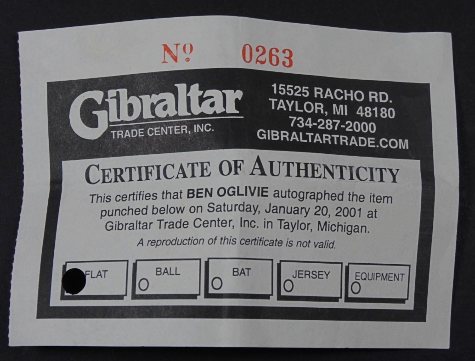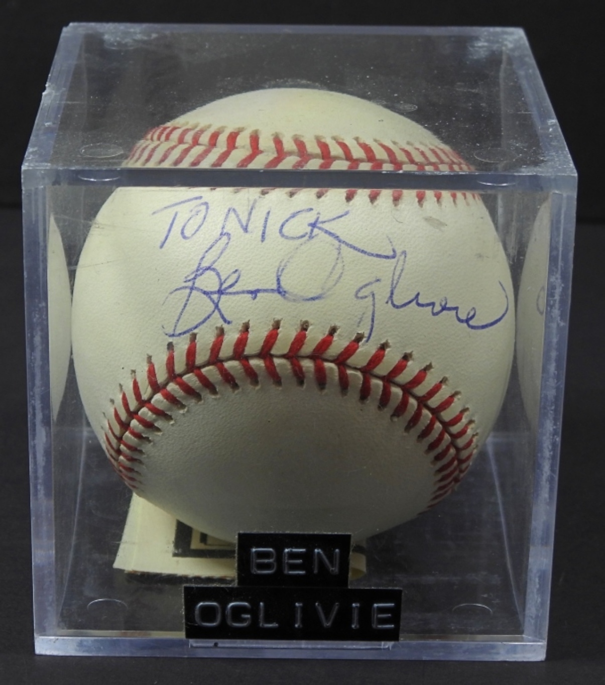 BREWERS BEN OGLIVIE SIGNED BASEBALL TO NICK ,IN PROTECTIVE CASING WITH COA by GILBRALTOR / UNVERIFIED