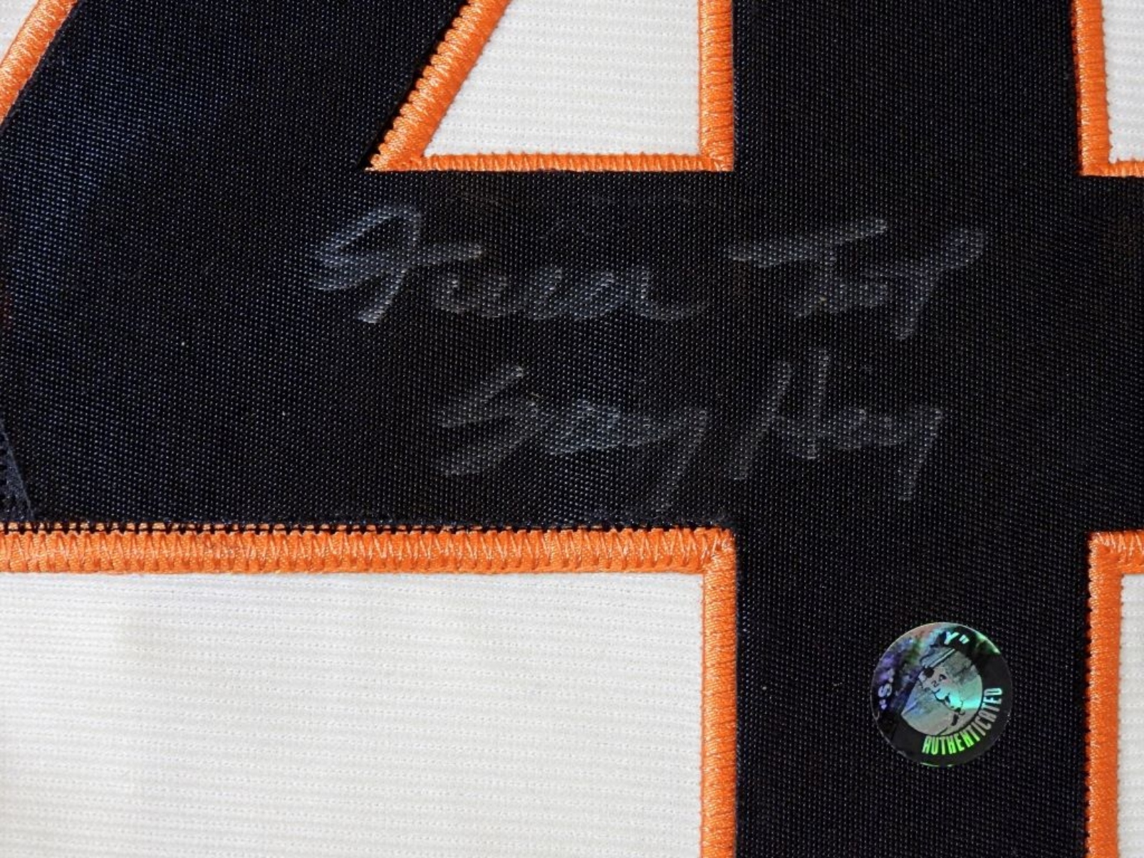SIGNED ”WILLIE MAYS SAYS HEY” GIANTS JERSEY, NO COA – HOLO STICER / UNVERIFIED