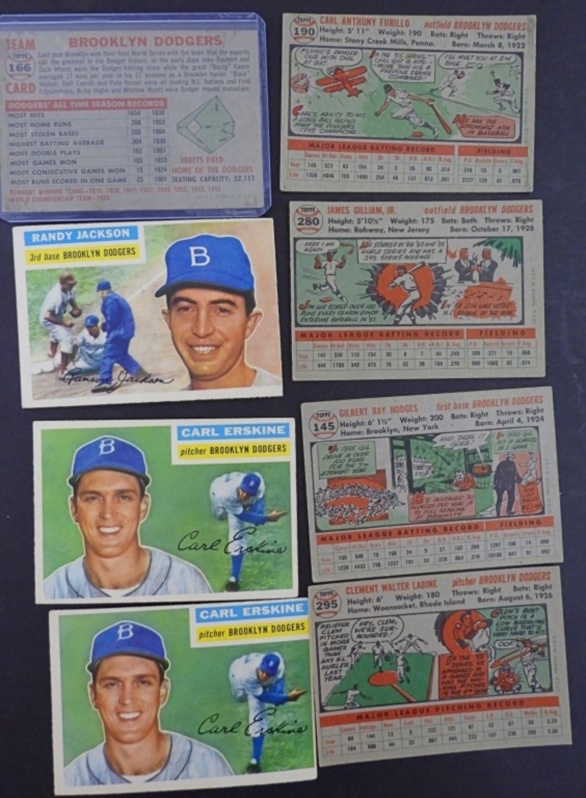 OVERALL IN VGEX CONDITION. HAS SOME WITH ROUGH CORNERS – INCLUDES GIL HODGES, JIM GILLIAM, DODGERS TEAM CARD