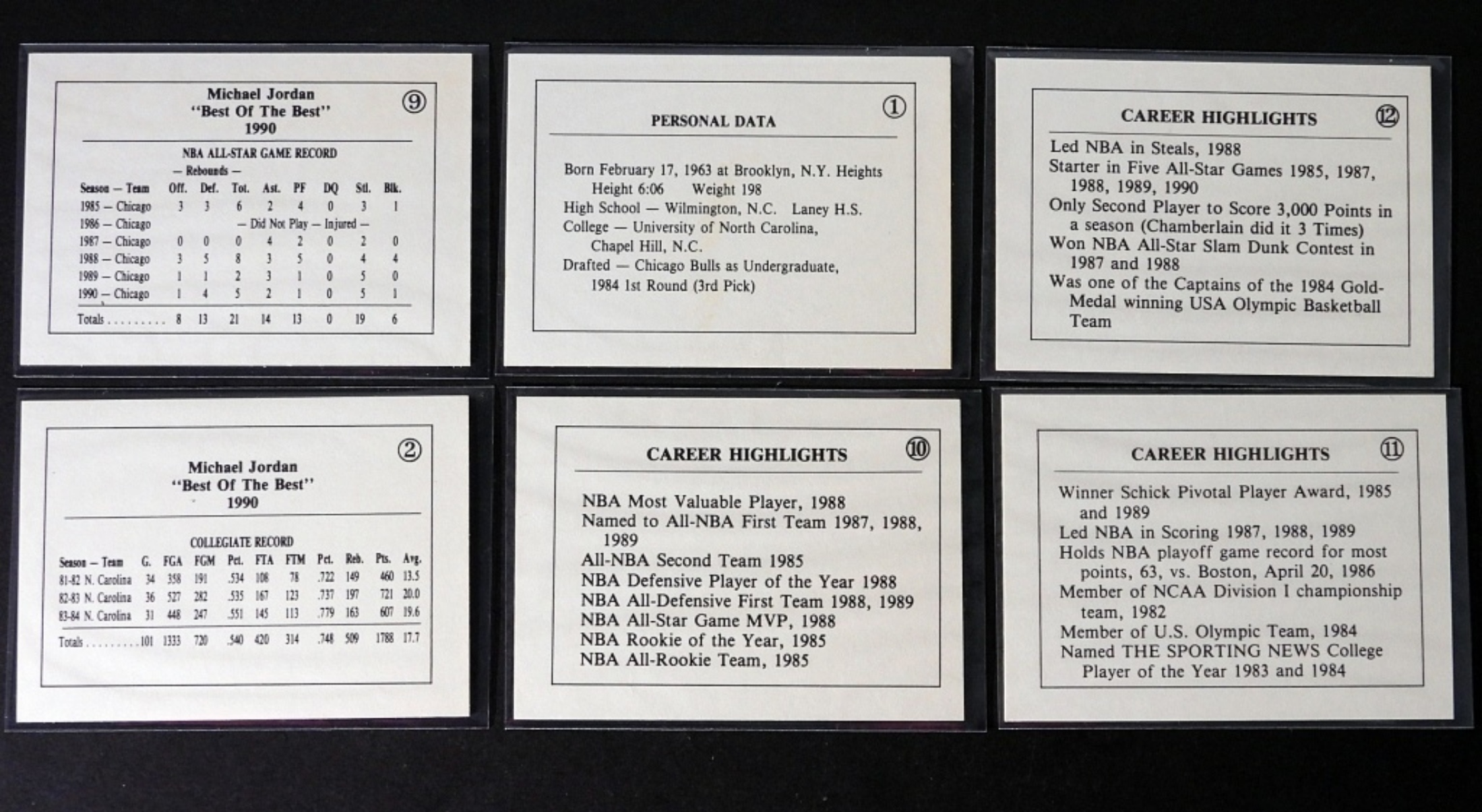 (12) 1990 MICHAEL JORDAN HIGHLIGHT CARDS- (EX)