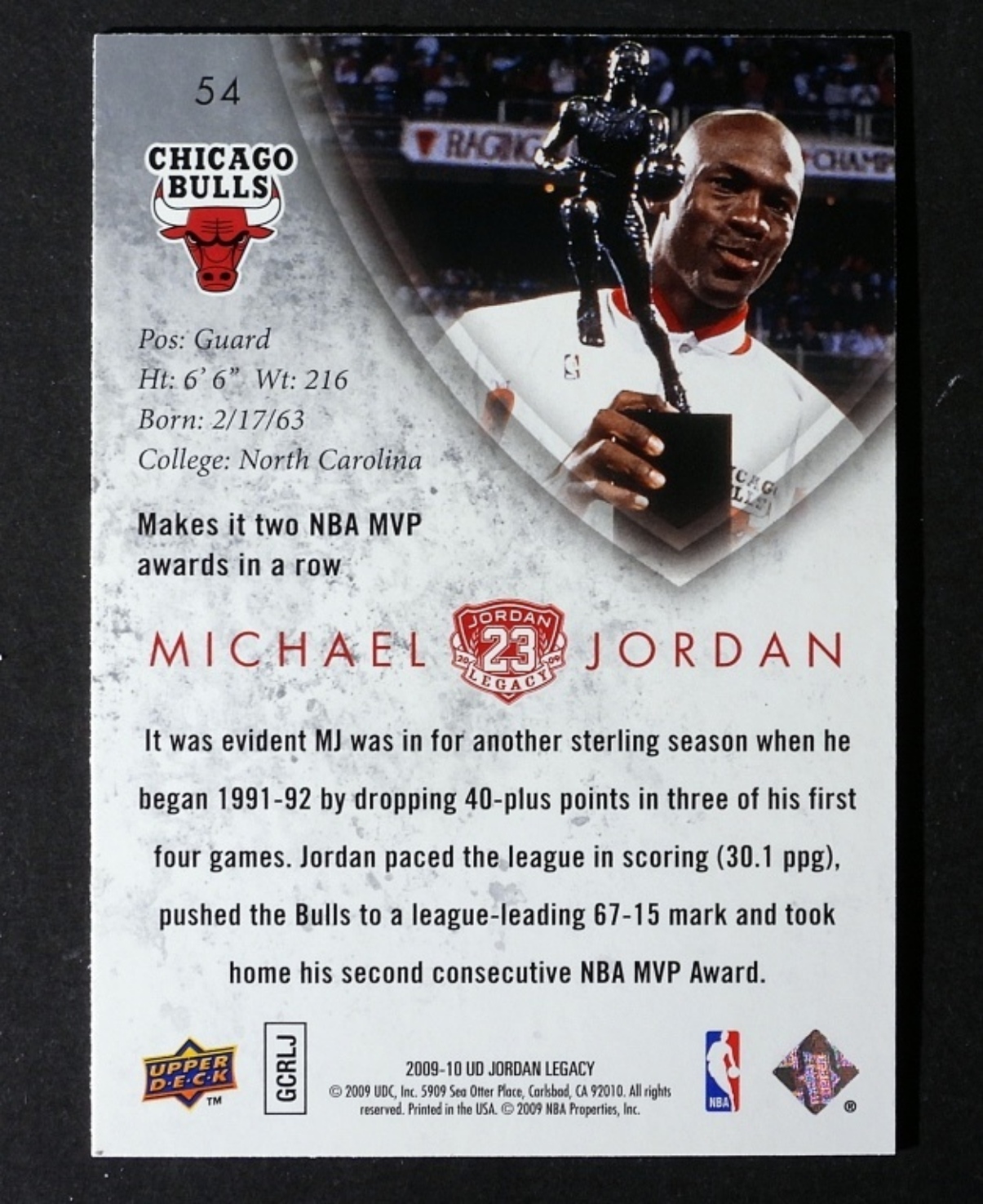 2009 MICHAEL JORDAN UPPER DECK JORDAN LEGACY #54- (NRMNT)