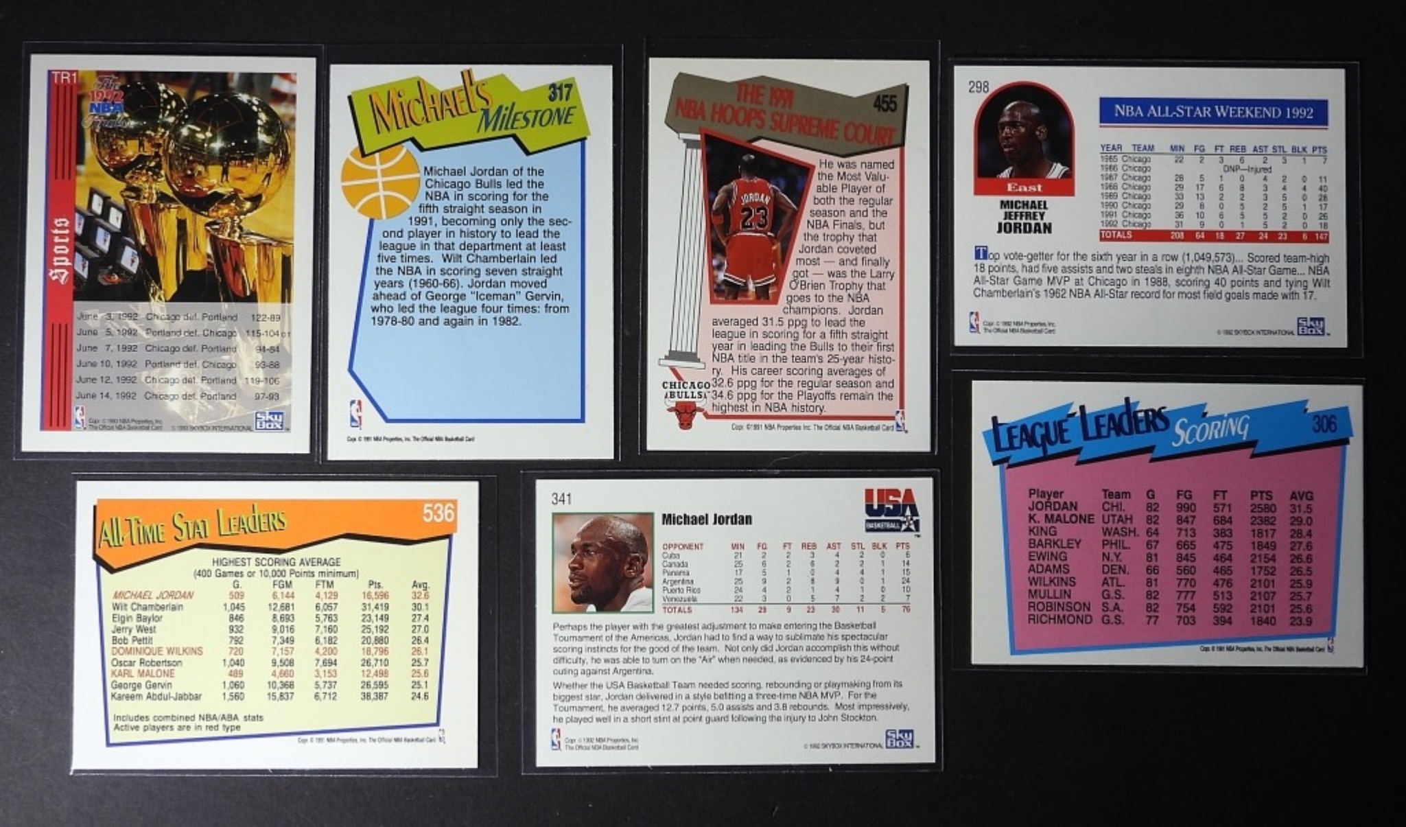 (7) 1991-93 NBA HOOPS MICHAEL JORDAN CARDS, NUMBER- TR1, 298, 306, 317, 341, 455, 536- (EXMNT)