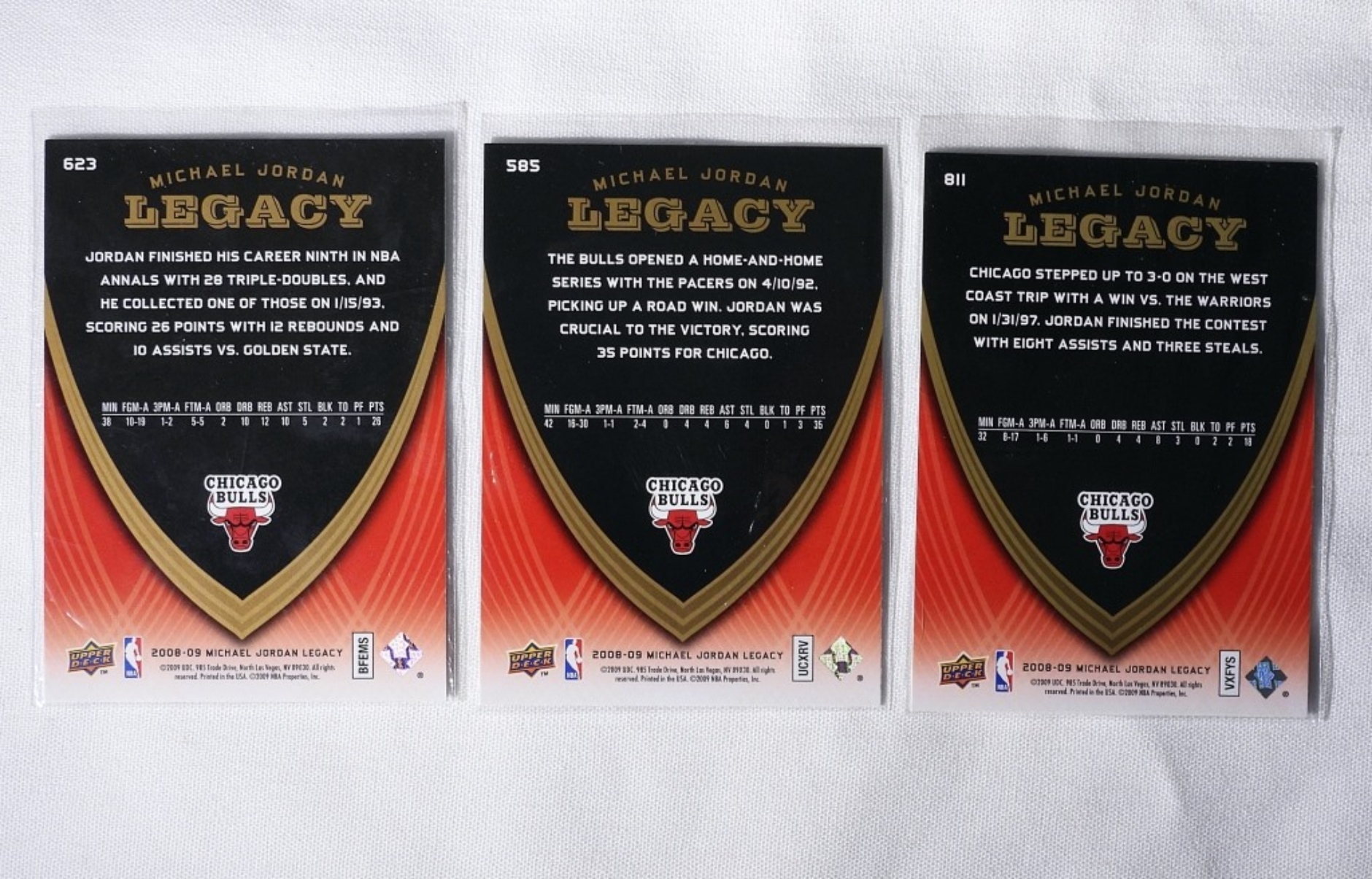 (3) 2008-09 UD MICHAEL JORDAN CHICAGO BULLS GAME CARDS, NUMBERS- 623, 585, 811- (EXMNT)