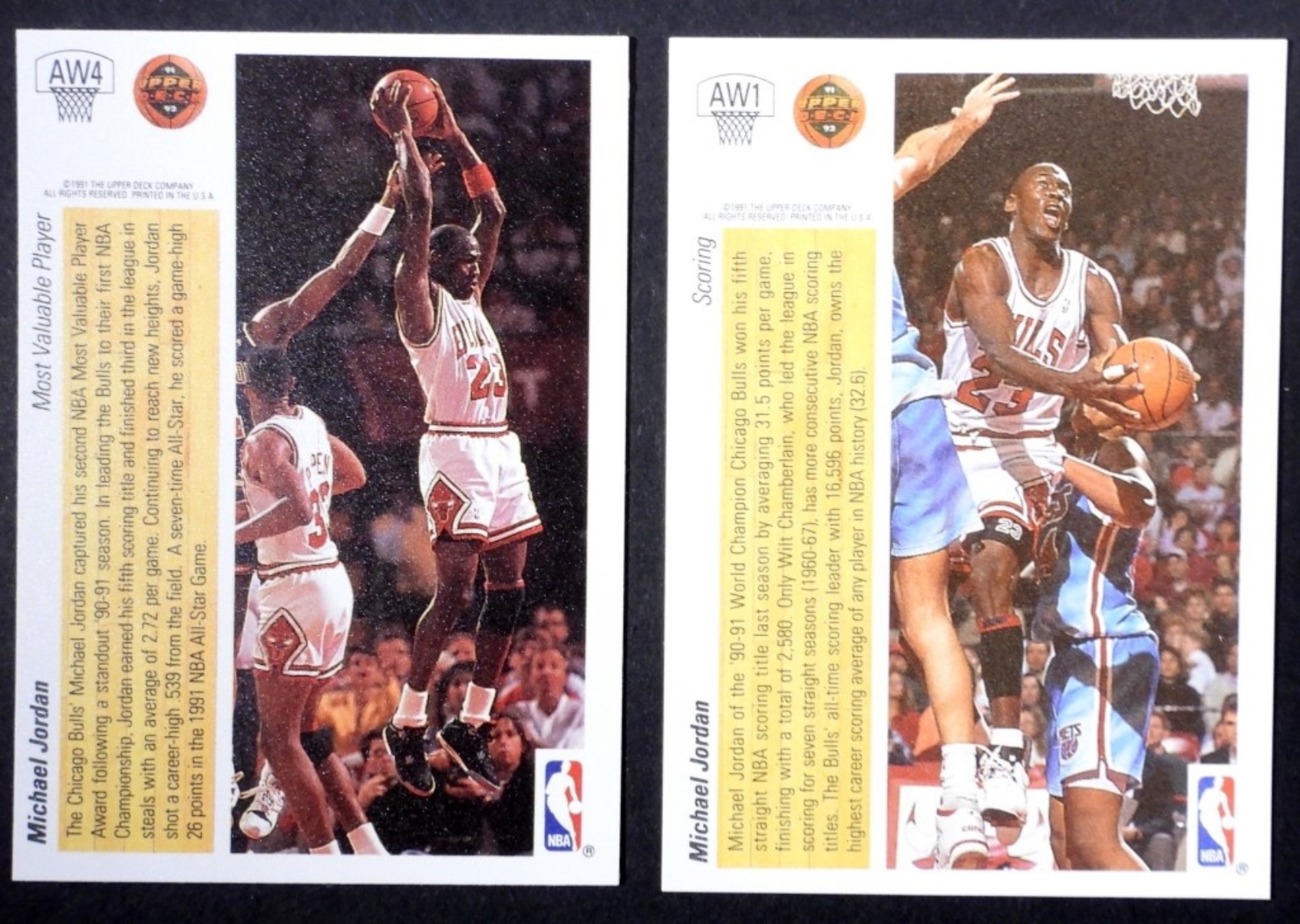 (2) 1991 UD MICHAEL JORDAN HOLOGRAPHIC CARDS NUMBER AW4, AW1 (NRMT-MT)