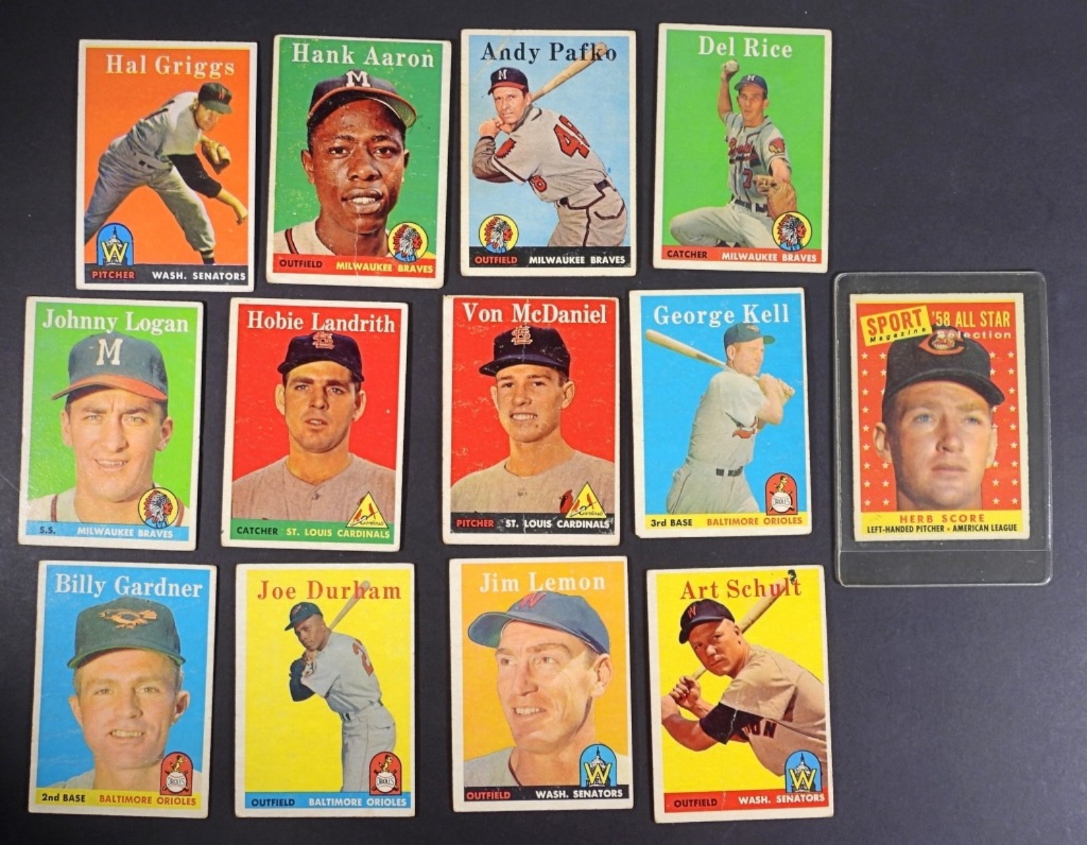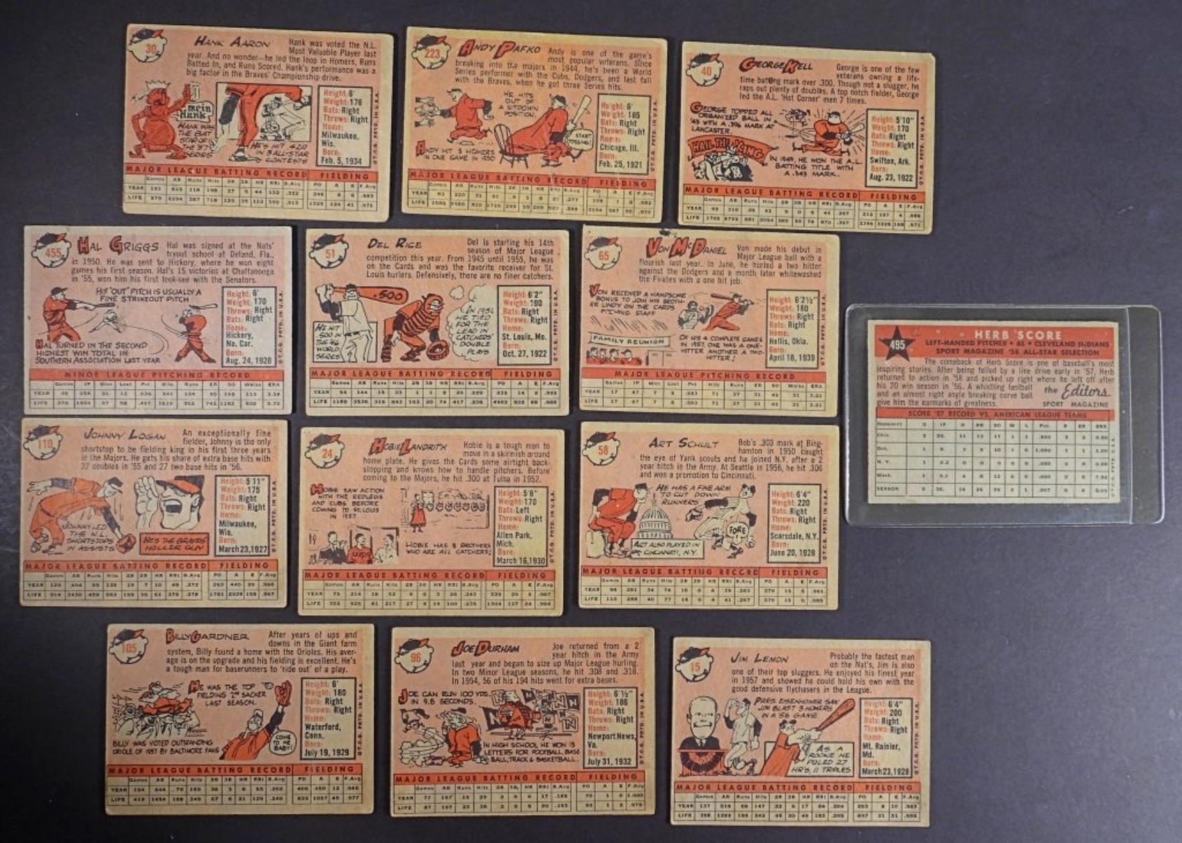 OVERALL IN VG CONDITION. MOST OF THEM HAVE CREASES. CORNERS ARE IN GOOD SHAPE ON MOST. COMES WITH 1 ALL STAR CARD & HANK AARON